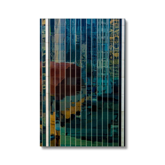 Urban reflections dance across a skyscraper's glazed facade Canvas