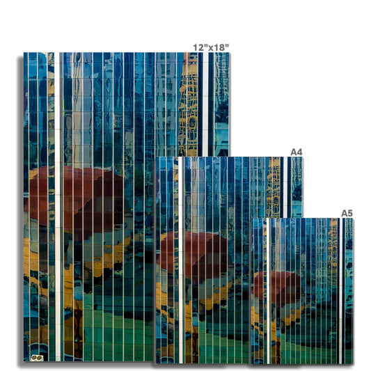 Urban reflections dance across a skyscraper's glazed facade Fine Art Print