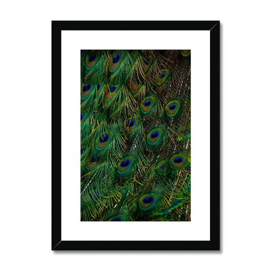 Close-up of a peacock's tail feathers. Framed & Mounted Print