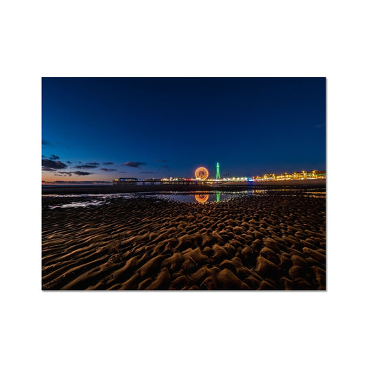 Blackpool Tower and Central Pier with reflection of illuminations Fine Art Print