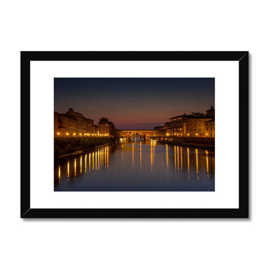Ponte Vecchio at sunset and the river Arno. Florence, Italy. Framed & Mounted Print