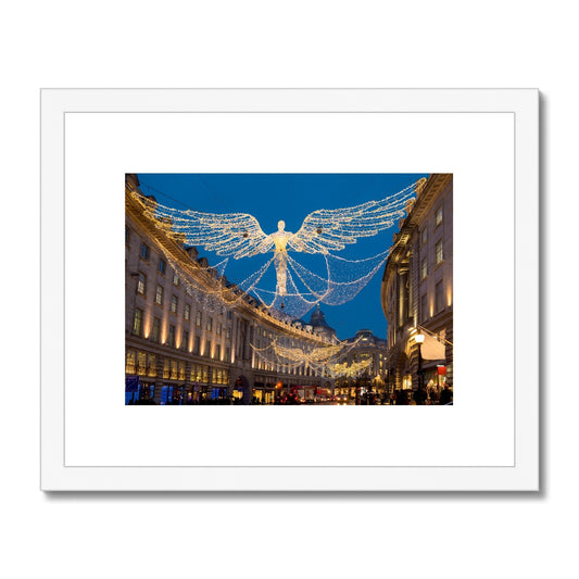 Christmas Angel illuminations in Regent Street, London, UK. Framed & Mounted Print