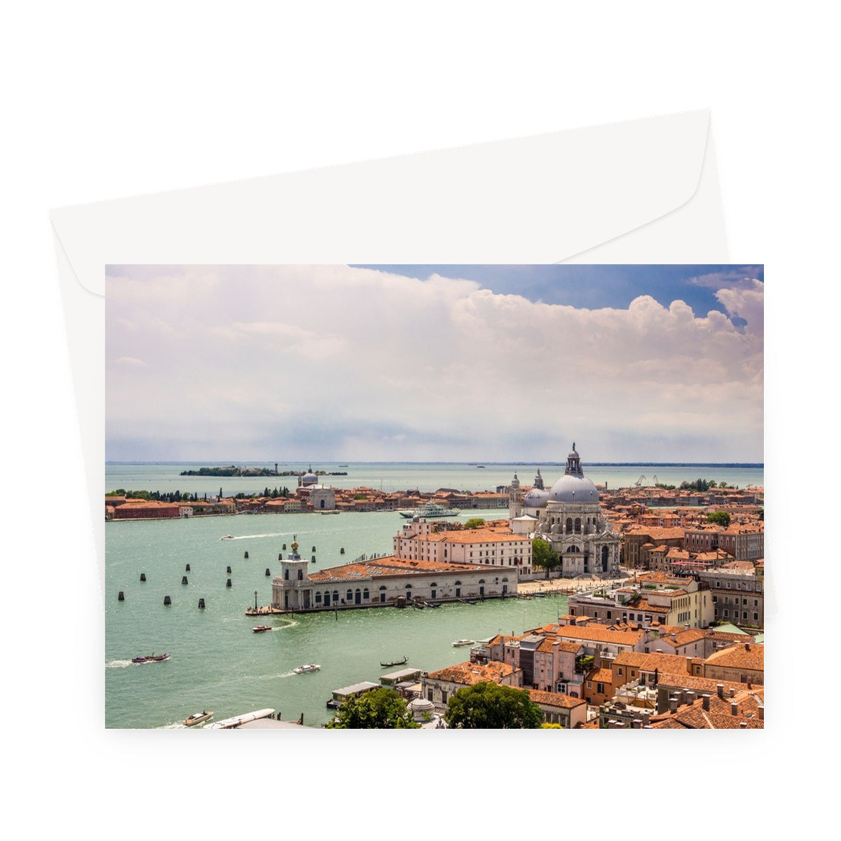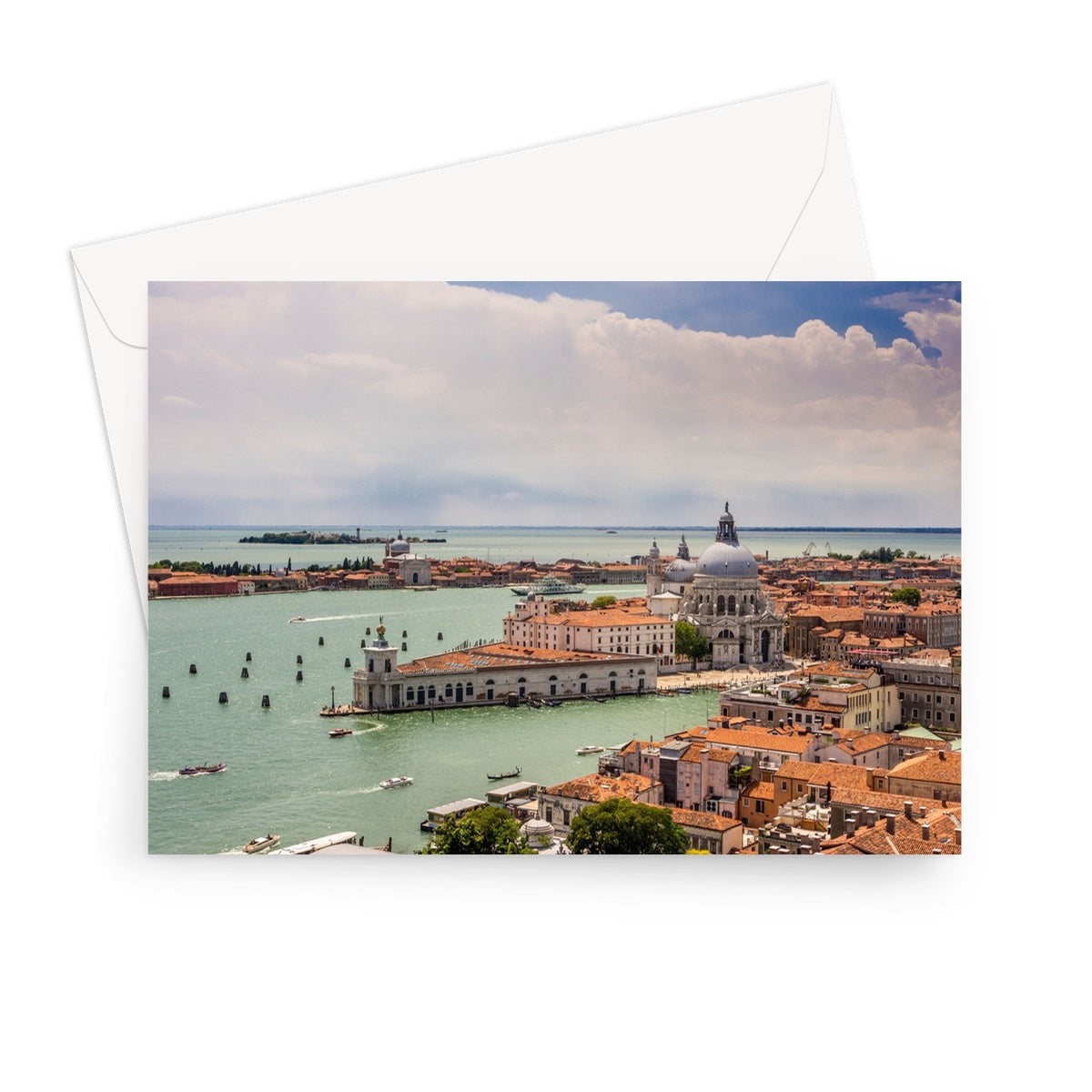 Aerial photograph of Punta della Dogana and church of Santa Maria della Salute, Venice, Italy. Greeting Card