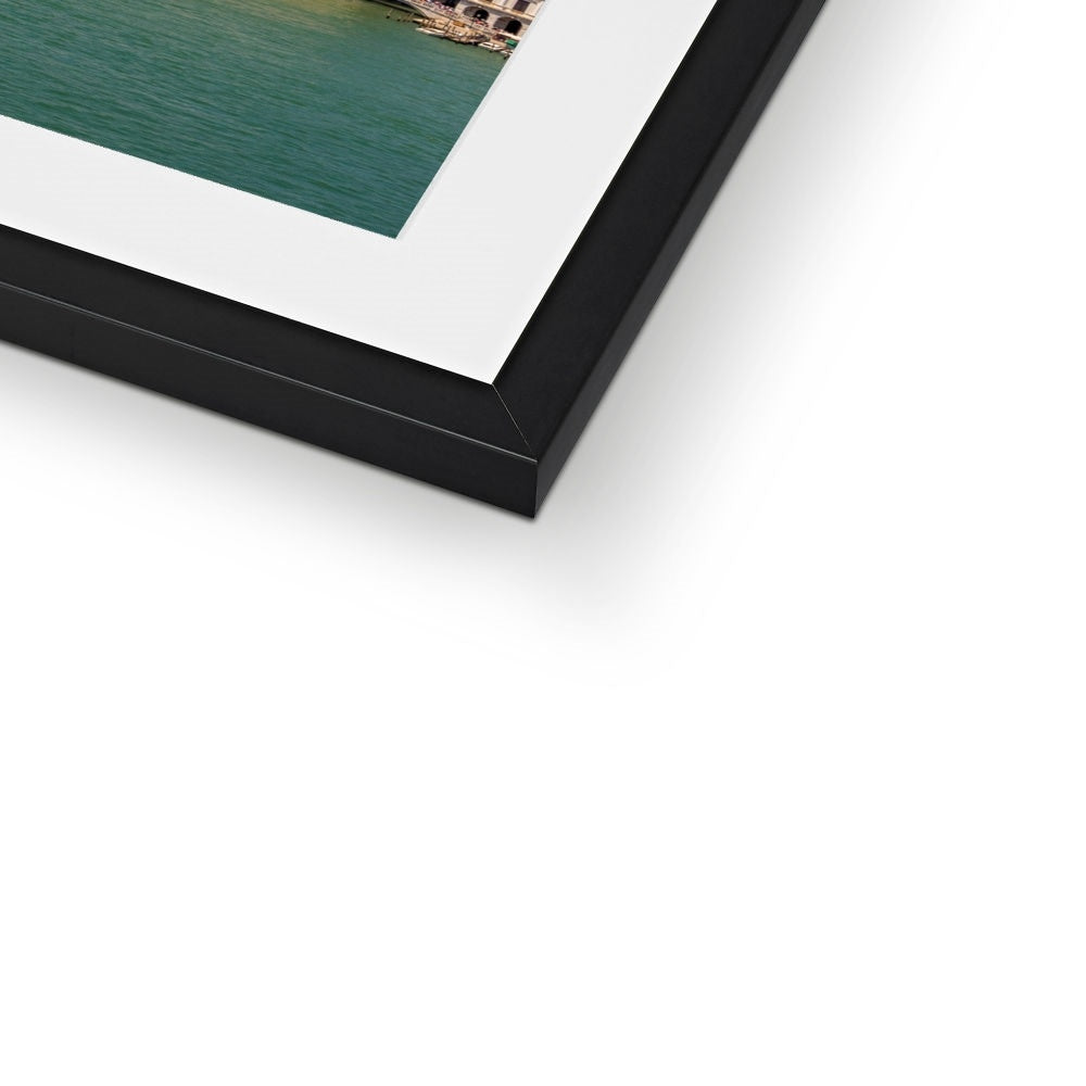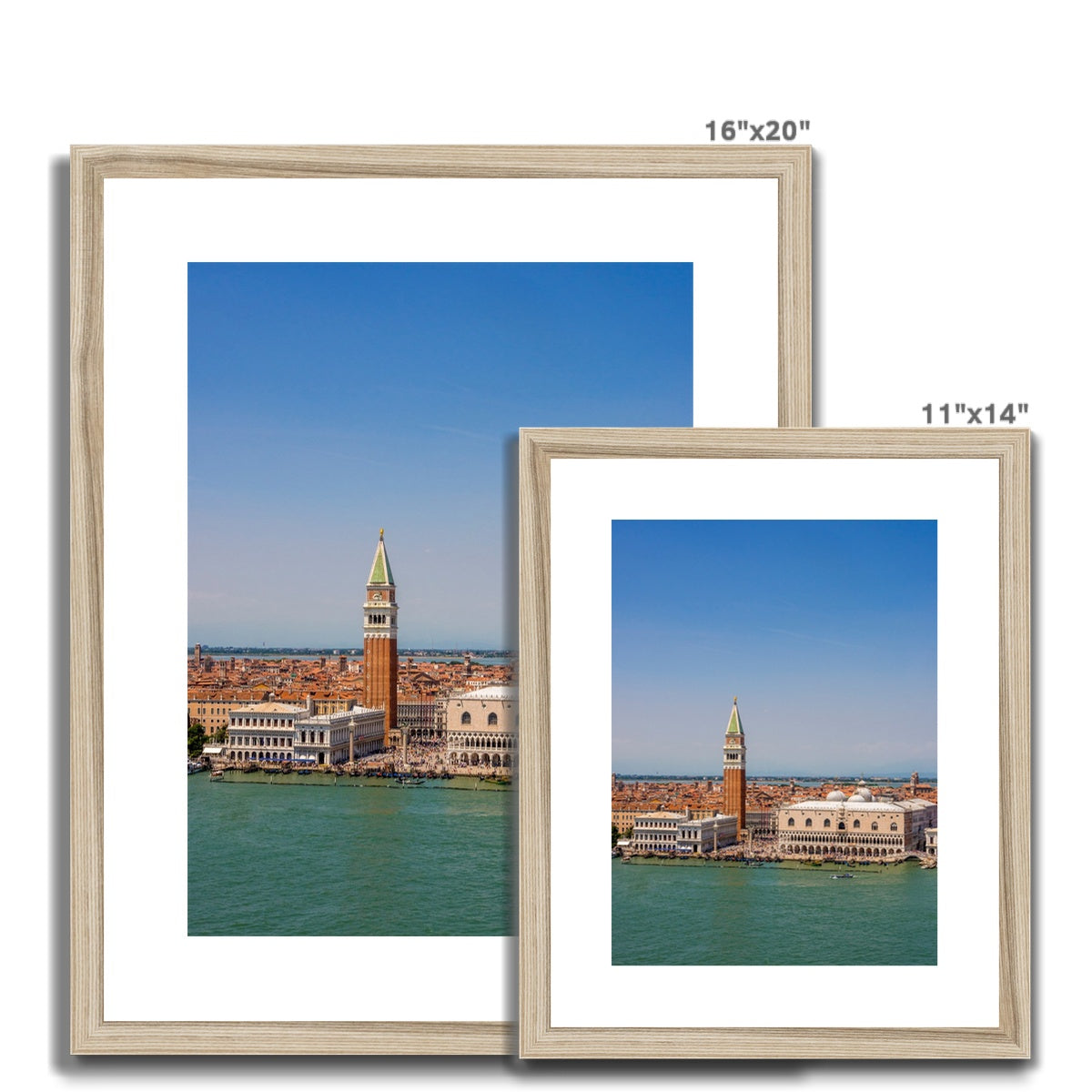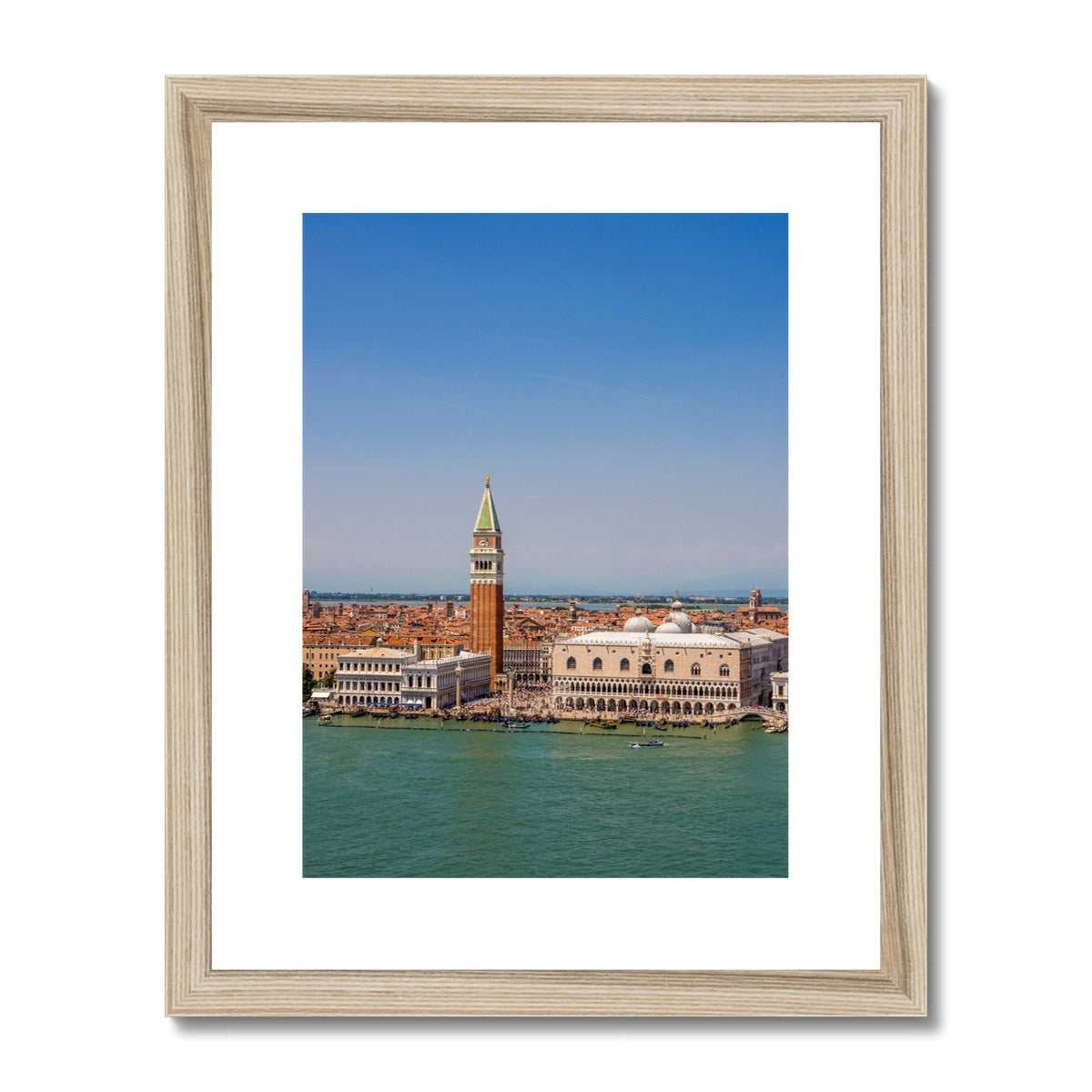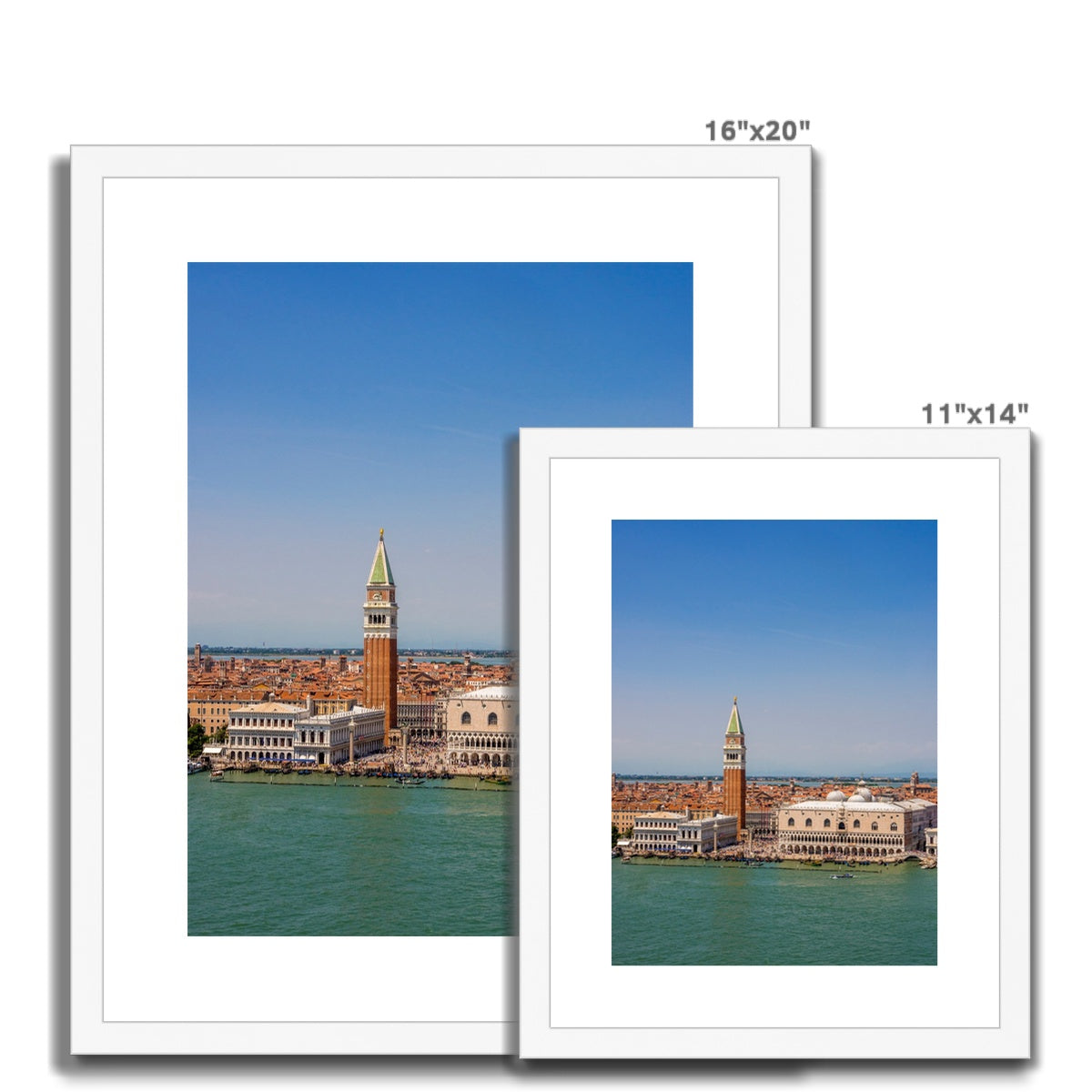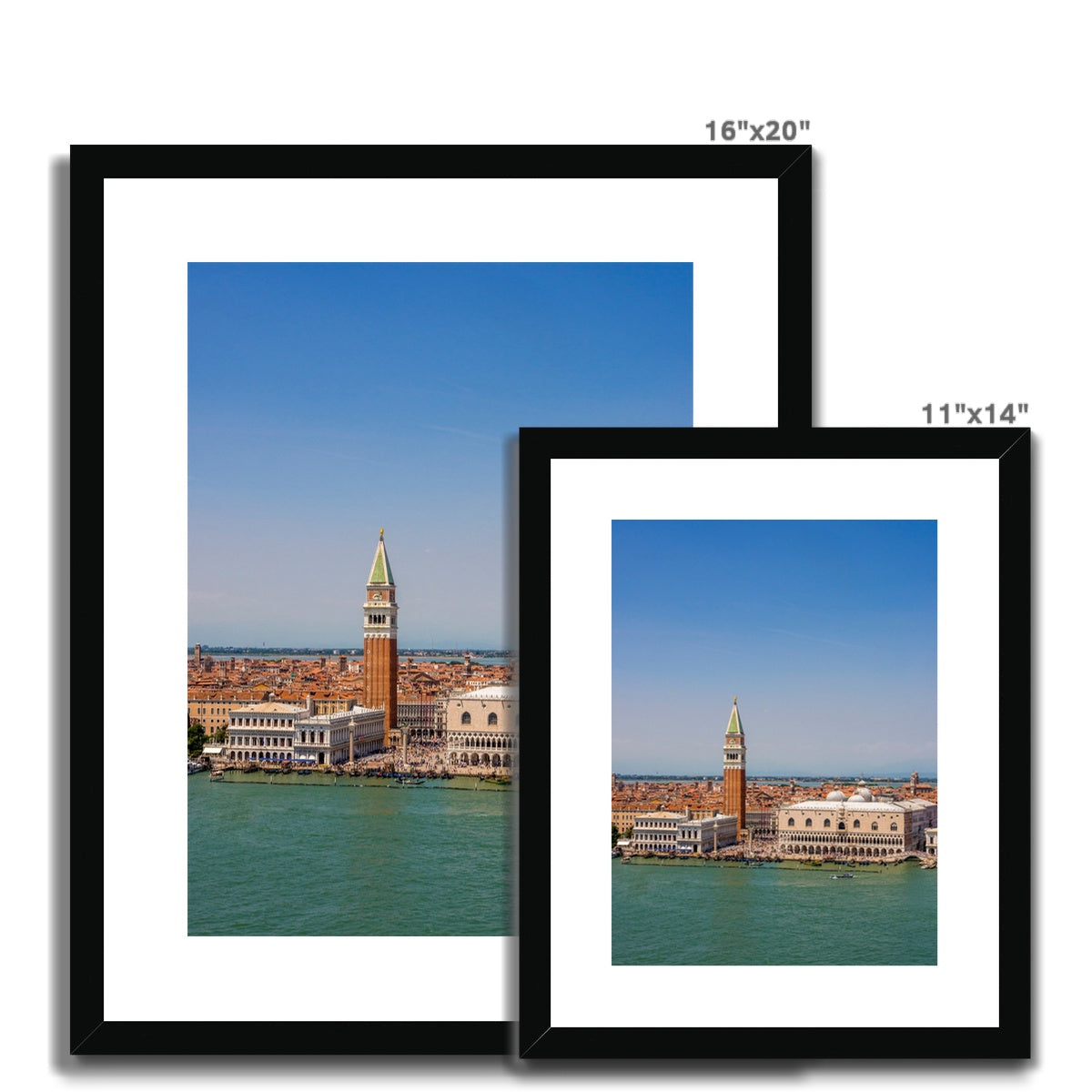 Aerial view of Doges Palace and the bell tower of St Marks basilica, St Marks Basin, Venice. Italy. Framed & Mounted Print
