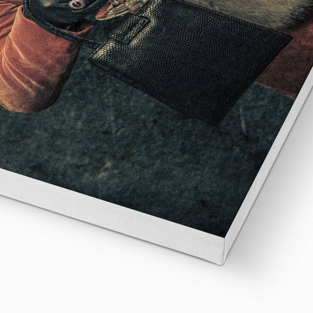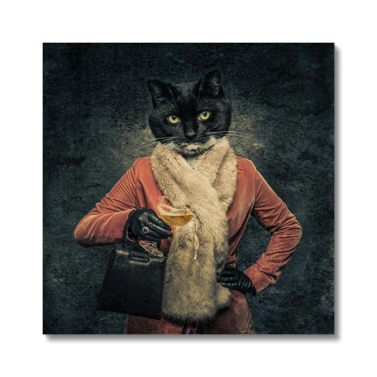 Anthropomorphic cat spilling drink from champagne coupe Canvas