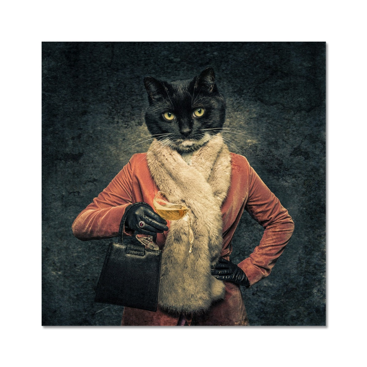 Anthropomorphic cat spilling drink from champagne coupe Fine Art Print