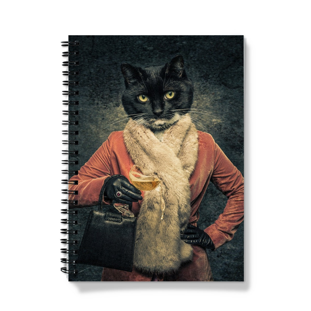 Anthropomorphic cat spilling drink from champagne coupe Notebook