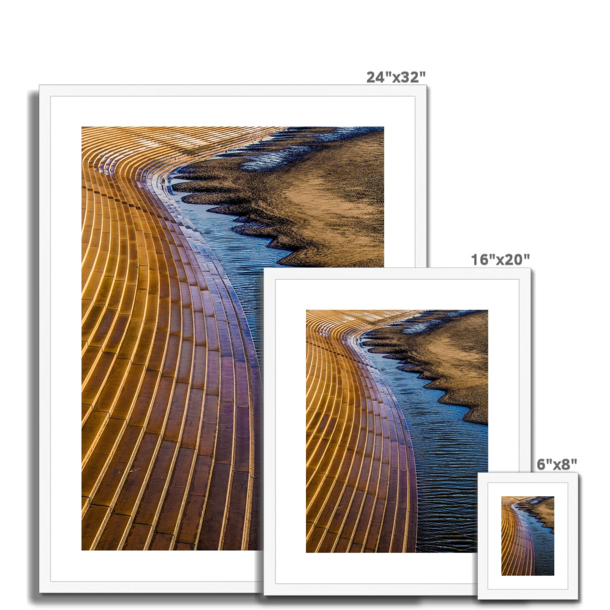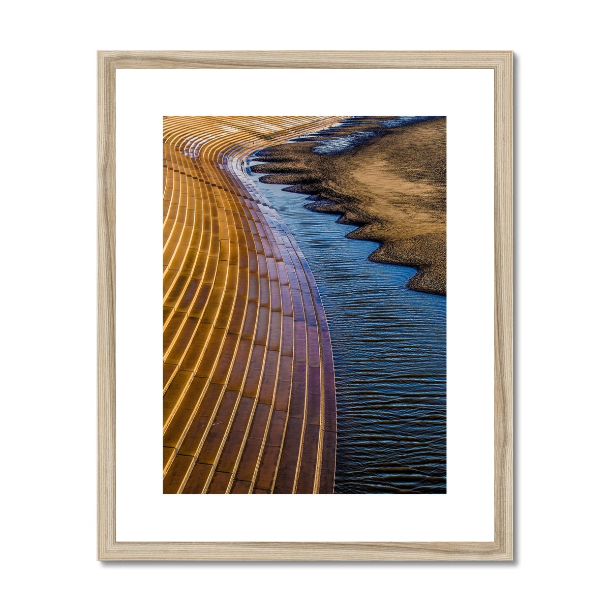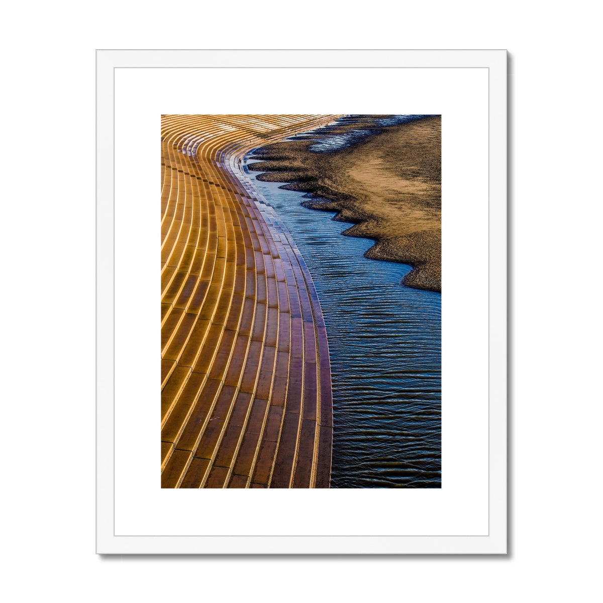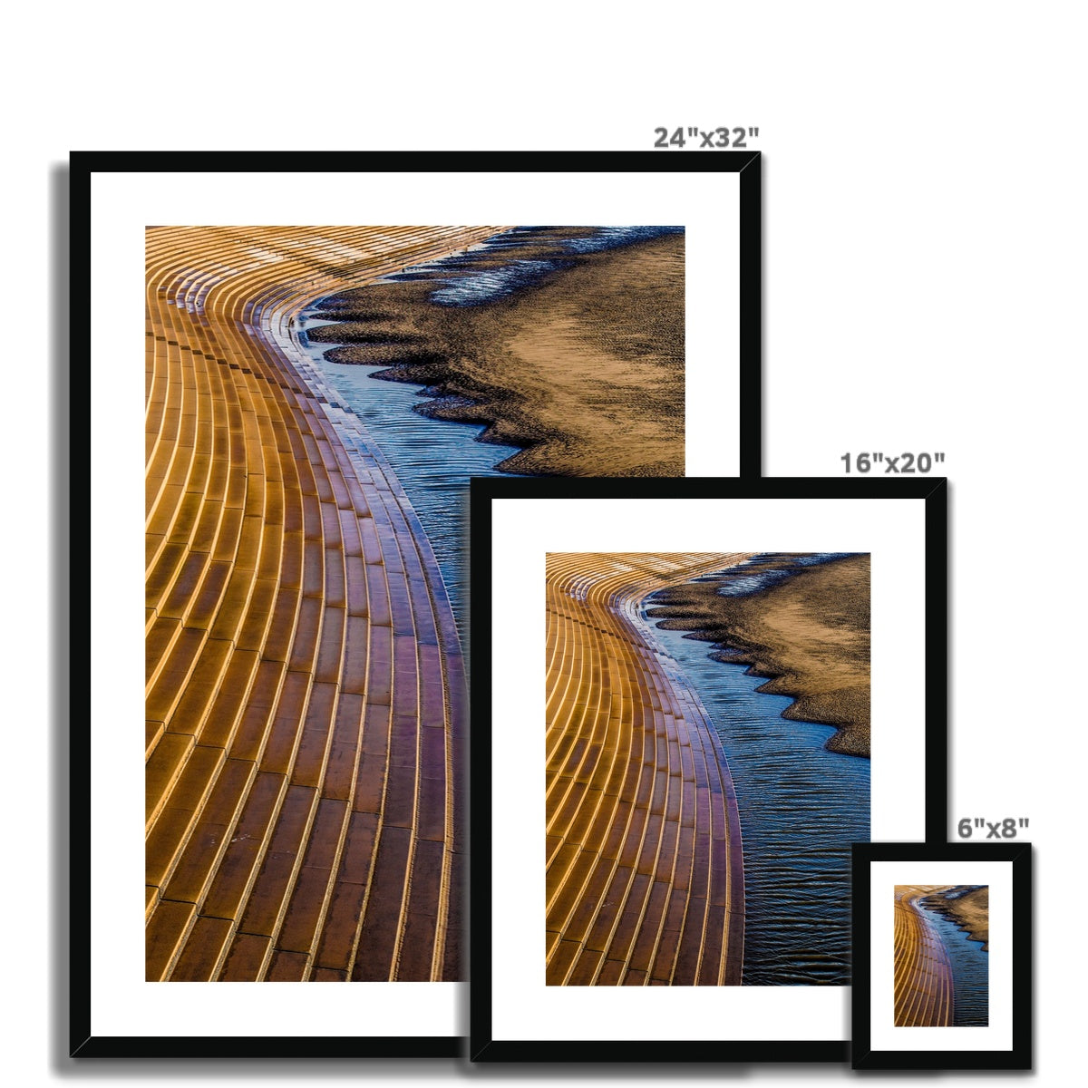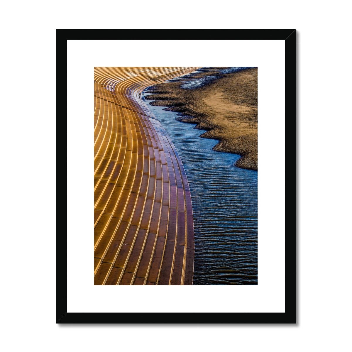 Blackpool sea defence stone steps leading down to beach. UK. Framed & Mounted Print