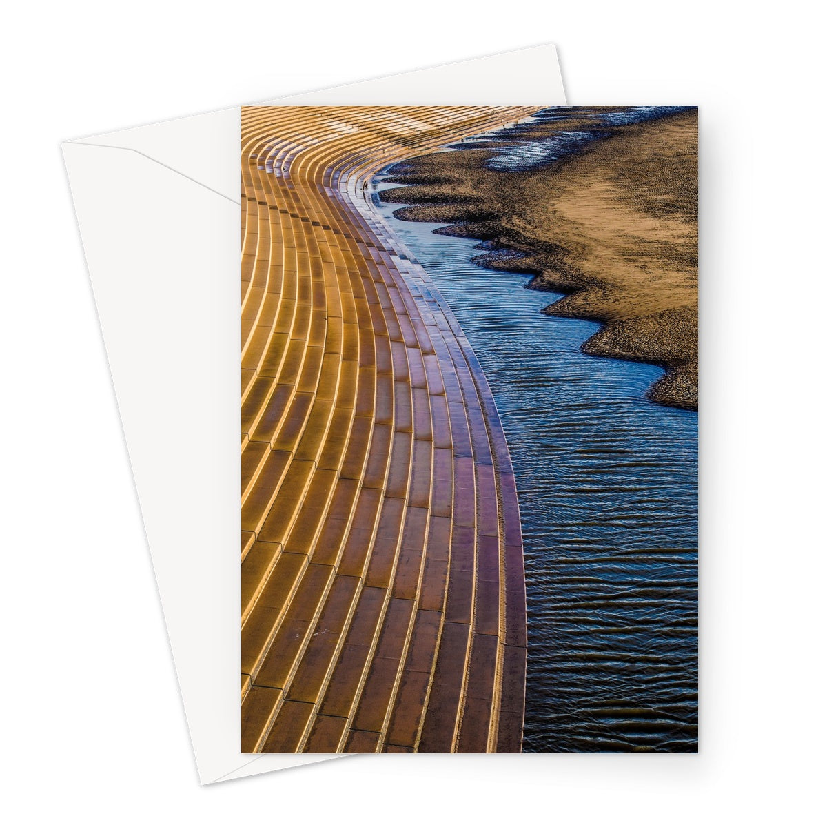 Blackpool sea defence stone steps leading down to beach. UK. Greeting Card