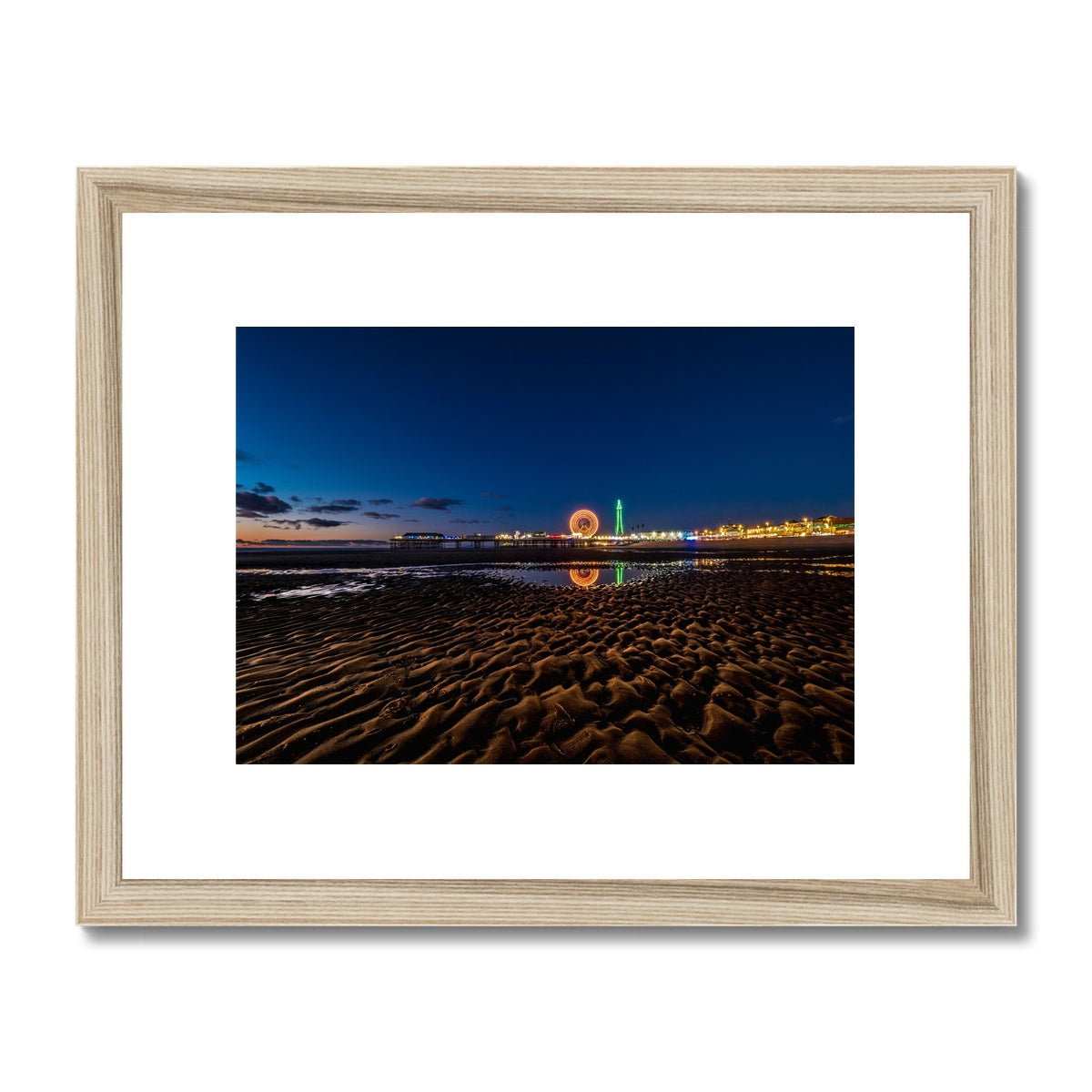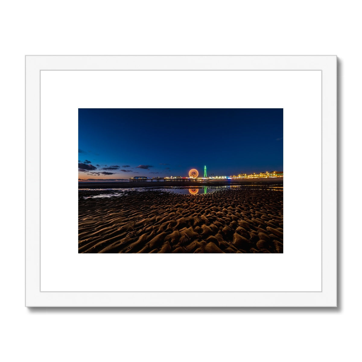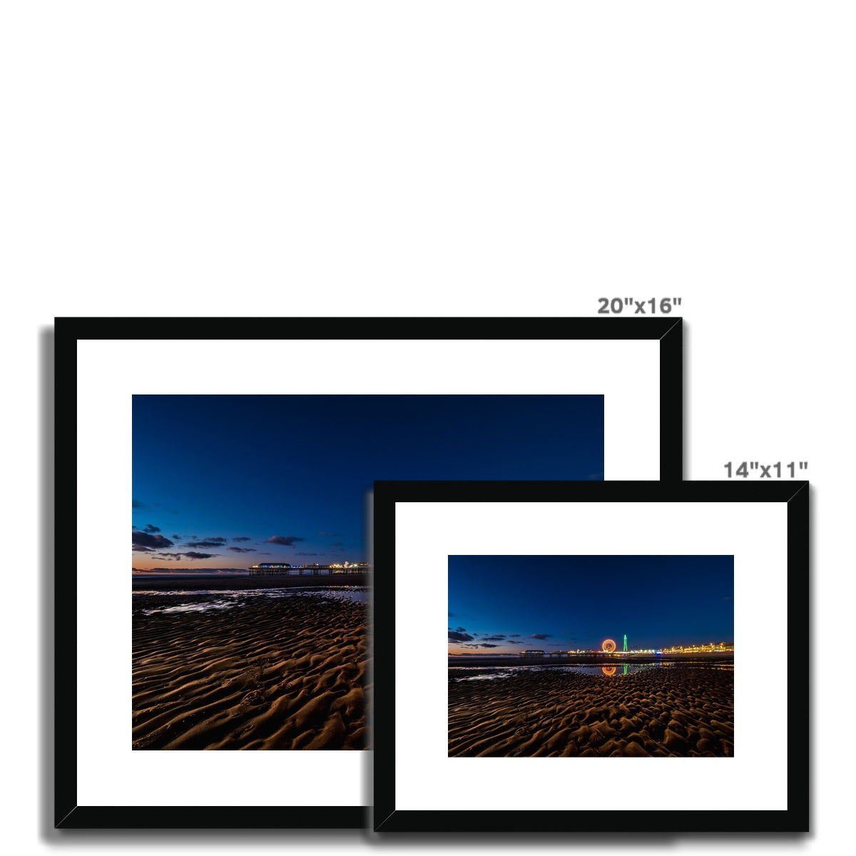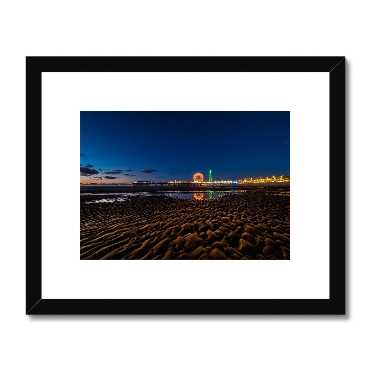 Blackpool Tower and Central Pier with reflection of illuminations Framed & Mounted Print