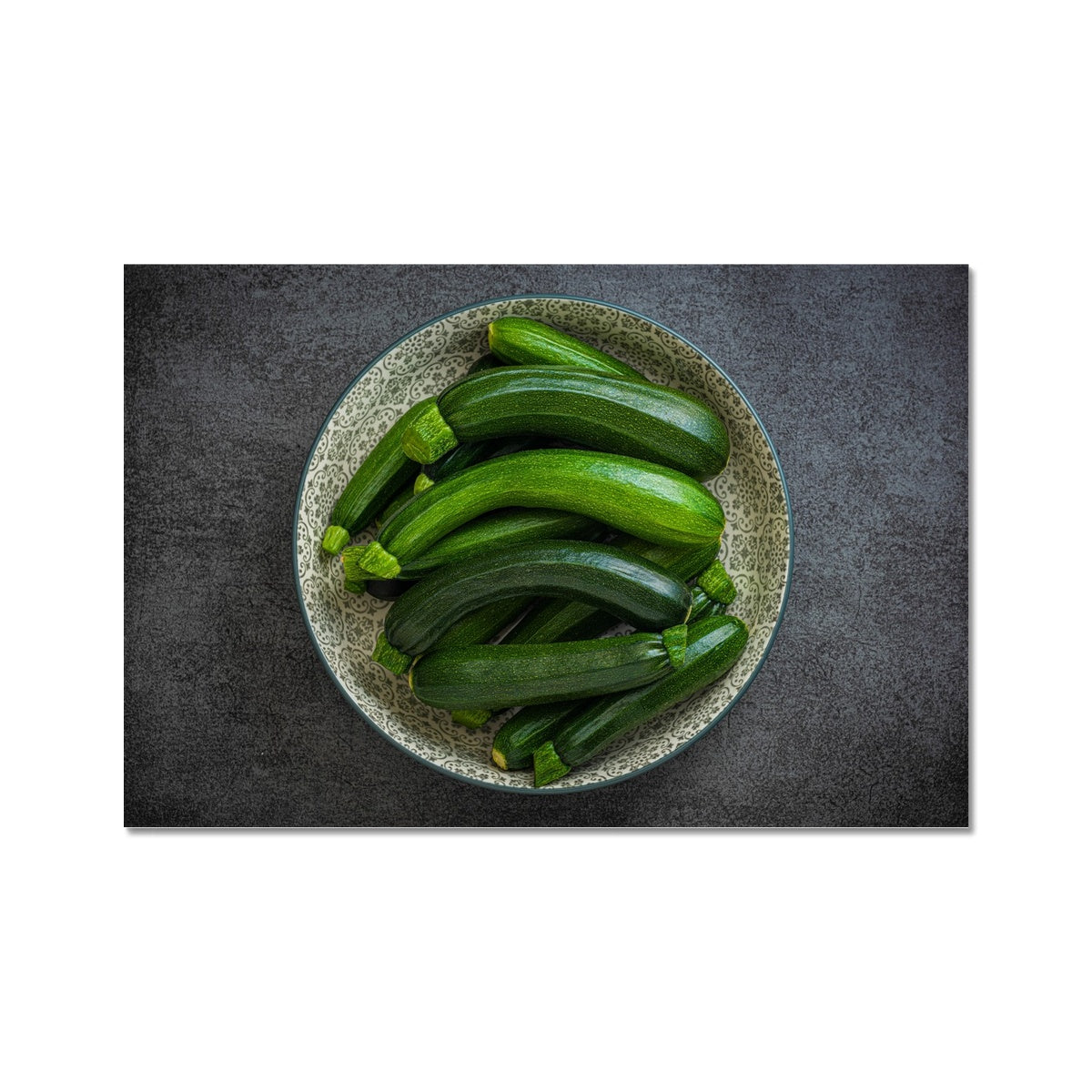 Bowl of green courgettes Fine Art Print