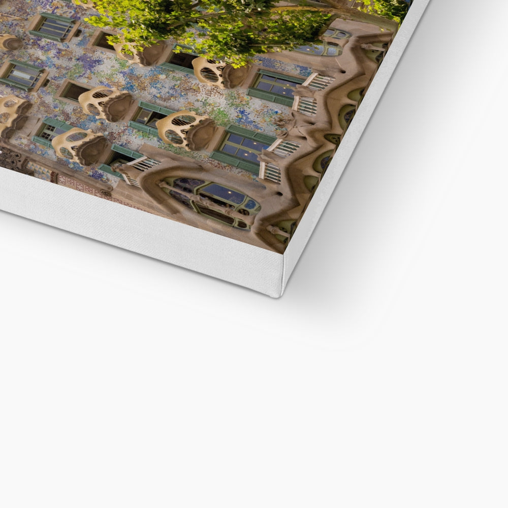 Casa Batlló mosaic facade with balconies and unusual tiled roof Canvas