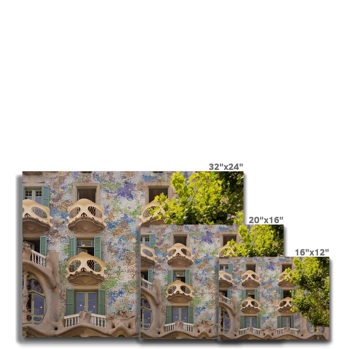 Casa Batlló mosaic facade with skeletal balconies. Barcelona Canvas