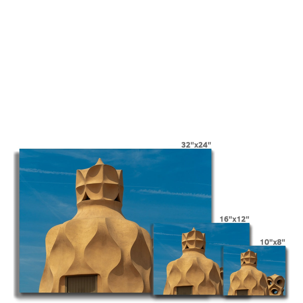 Casa Milà rooftop terrace architecture seen against a blue sky. Barcelona Canvas