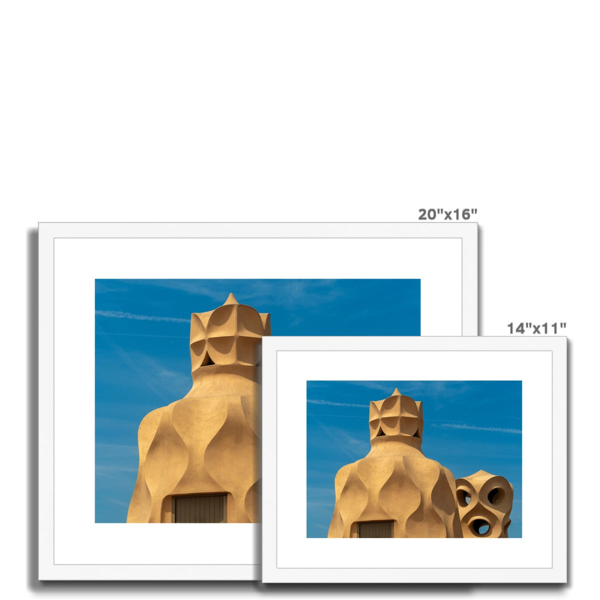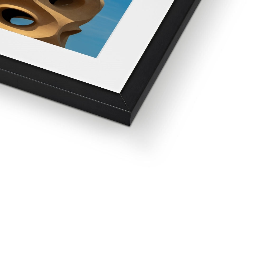 Casa Milà rooftop terrace architecture seen against a blue sky. Barcelona Framed & Mounted Print