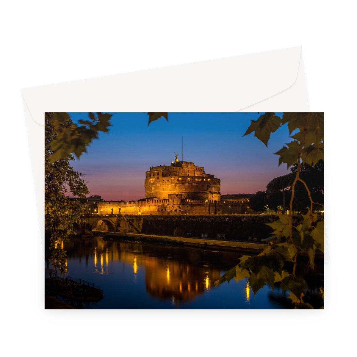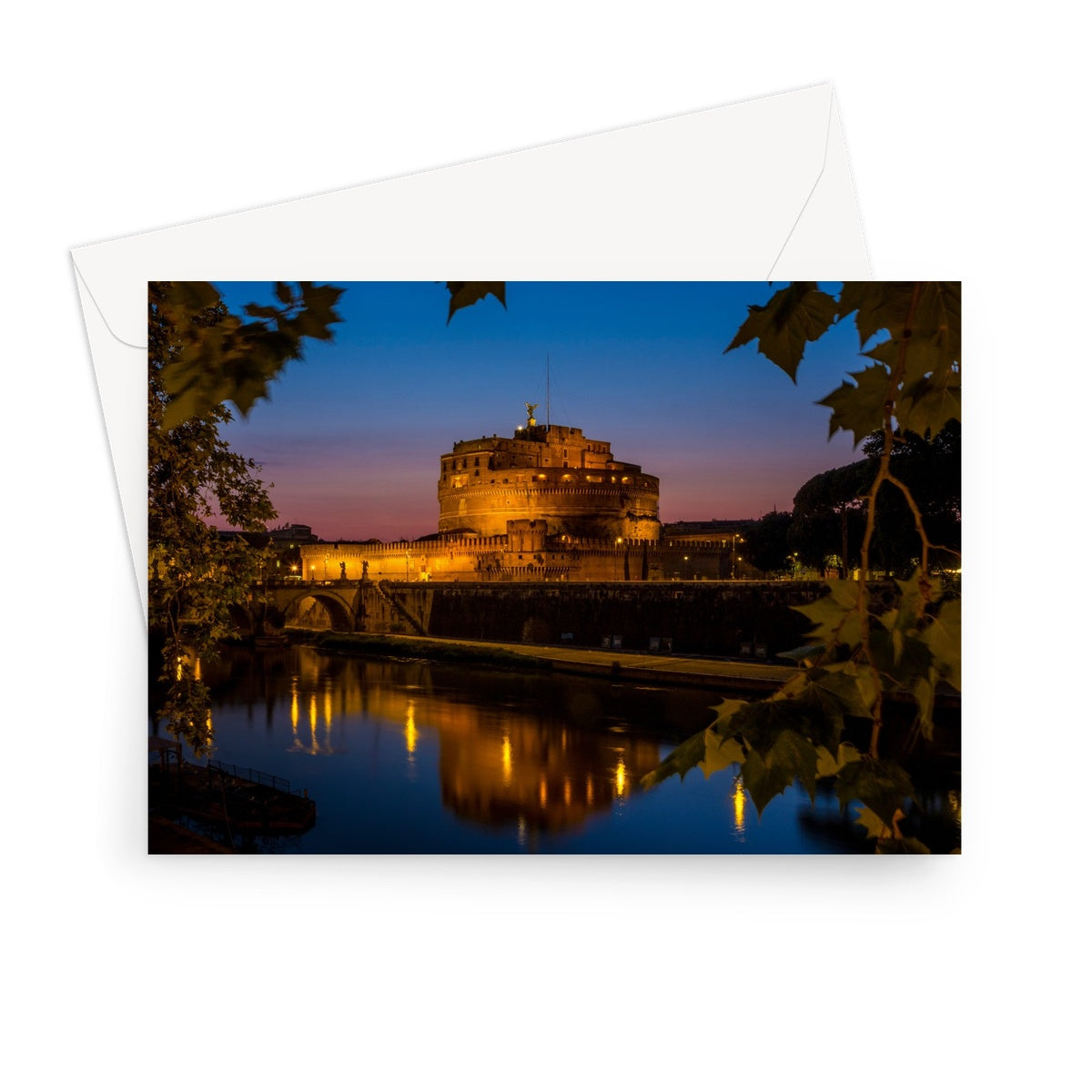 Castel sant'Angelo on the banks of the river tiber at night, Rome, Italy. Greeting Card