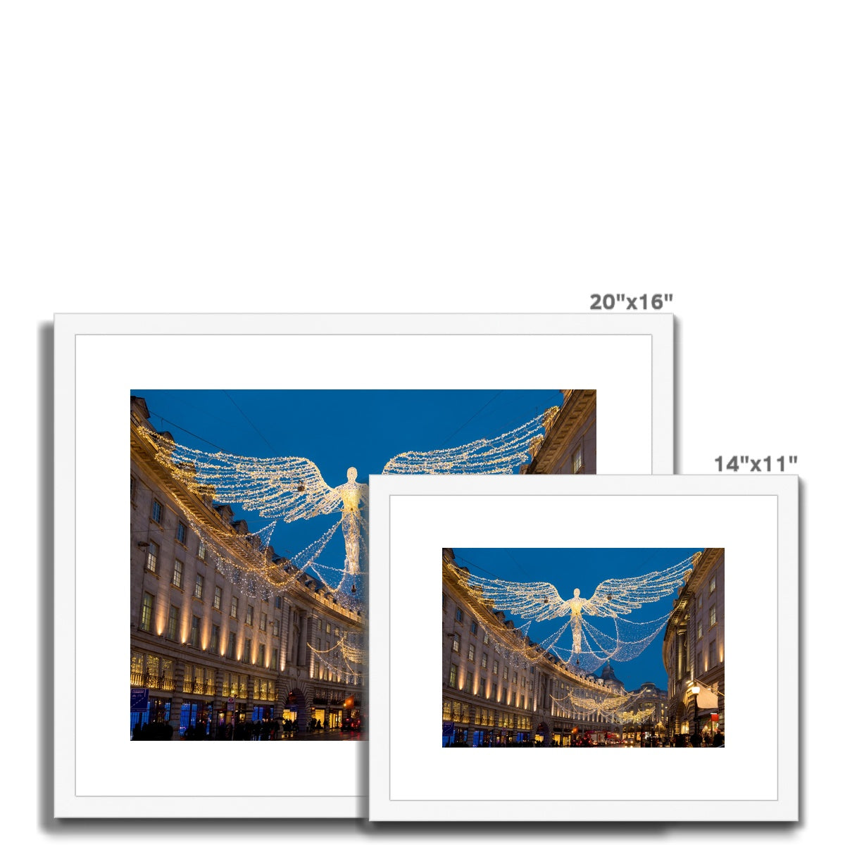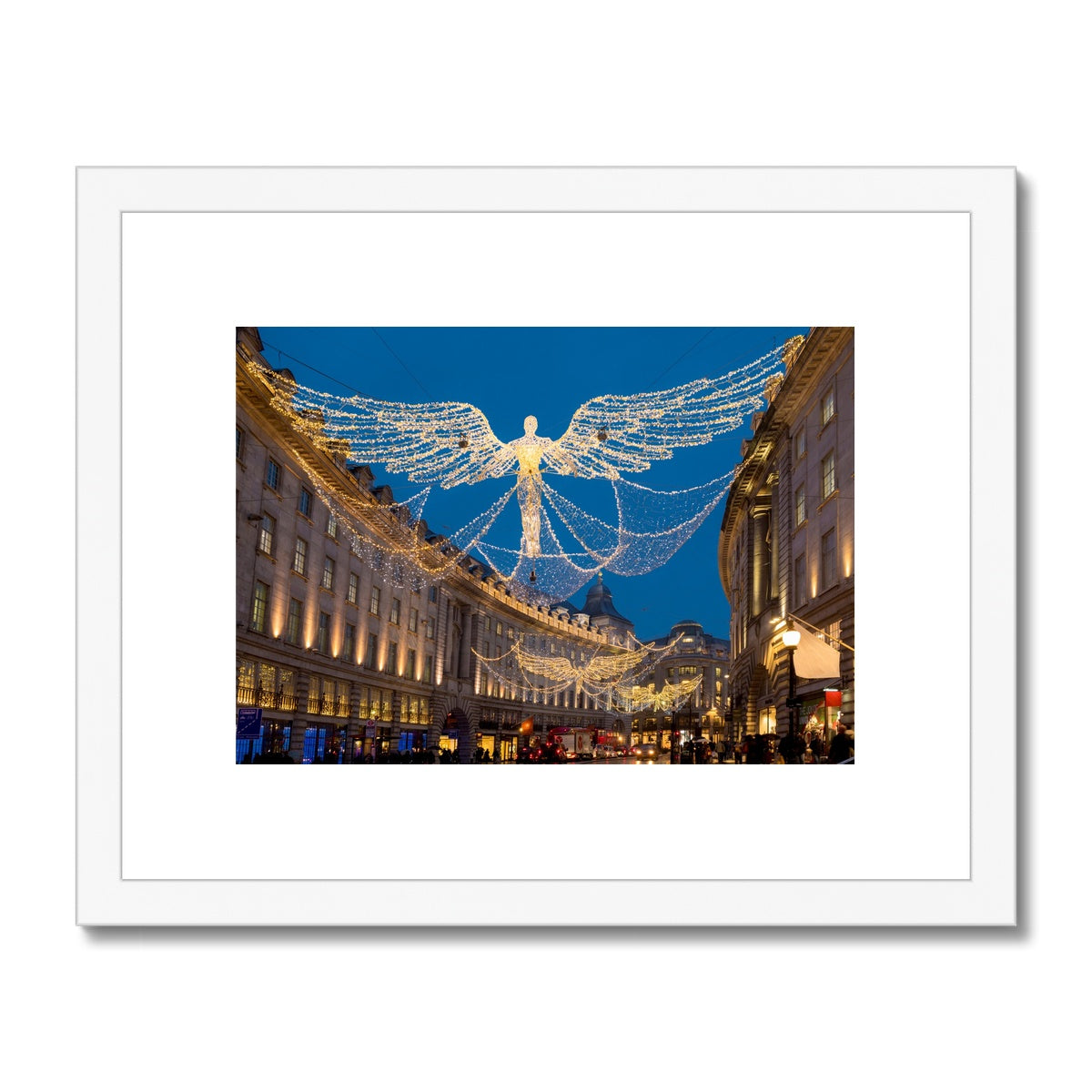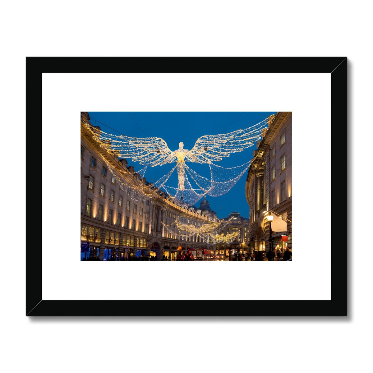 Christmas Angel illuminations in Regent Street, London, UK. Framed & Mounted Print
