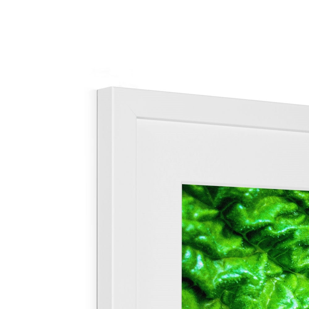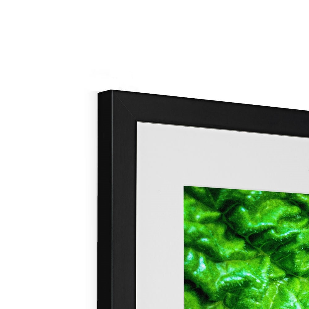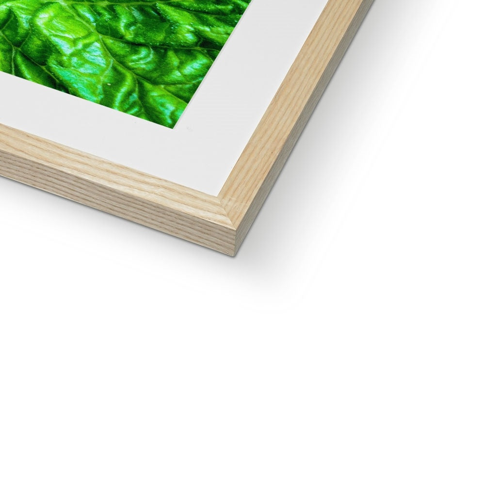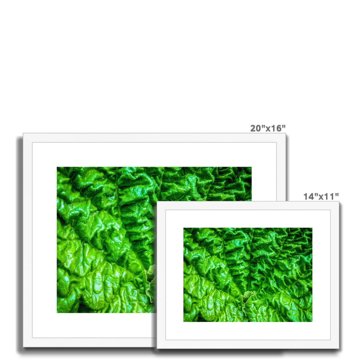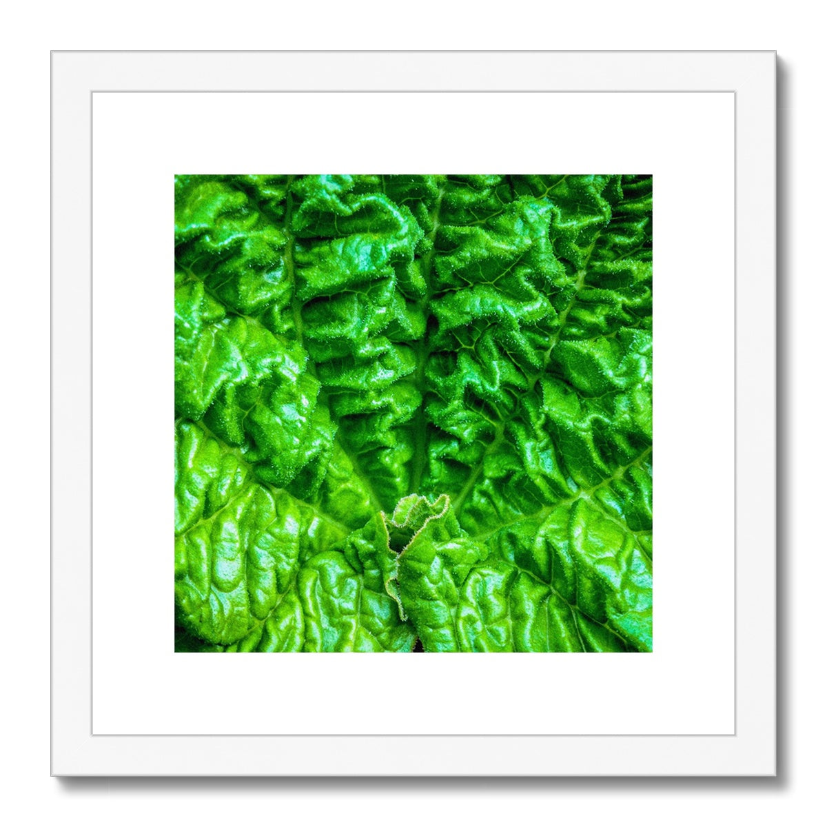 Close-up of the textured surface of a vivid green young rhubarb leaf Framed & Mounted Print