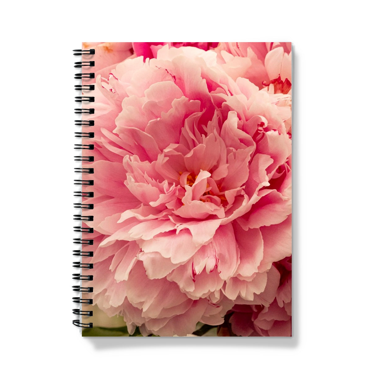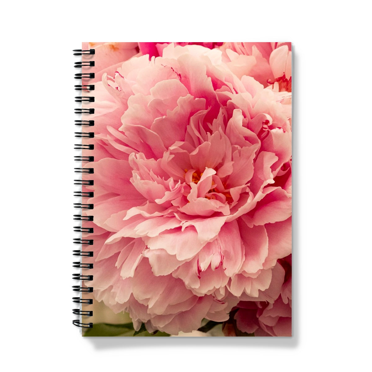 Delicate layers of pink peony petals in full bloom, captured in soft natural light for a dreamy effect Notebook