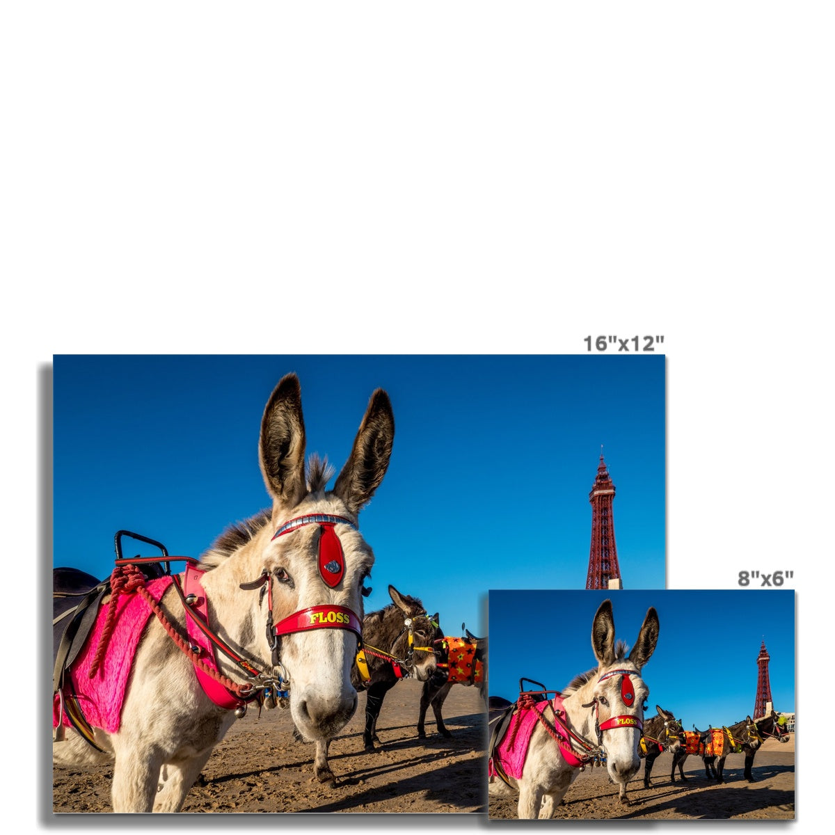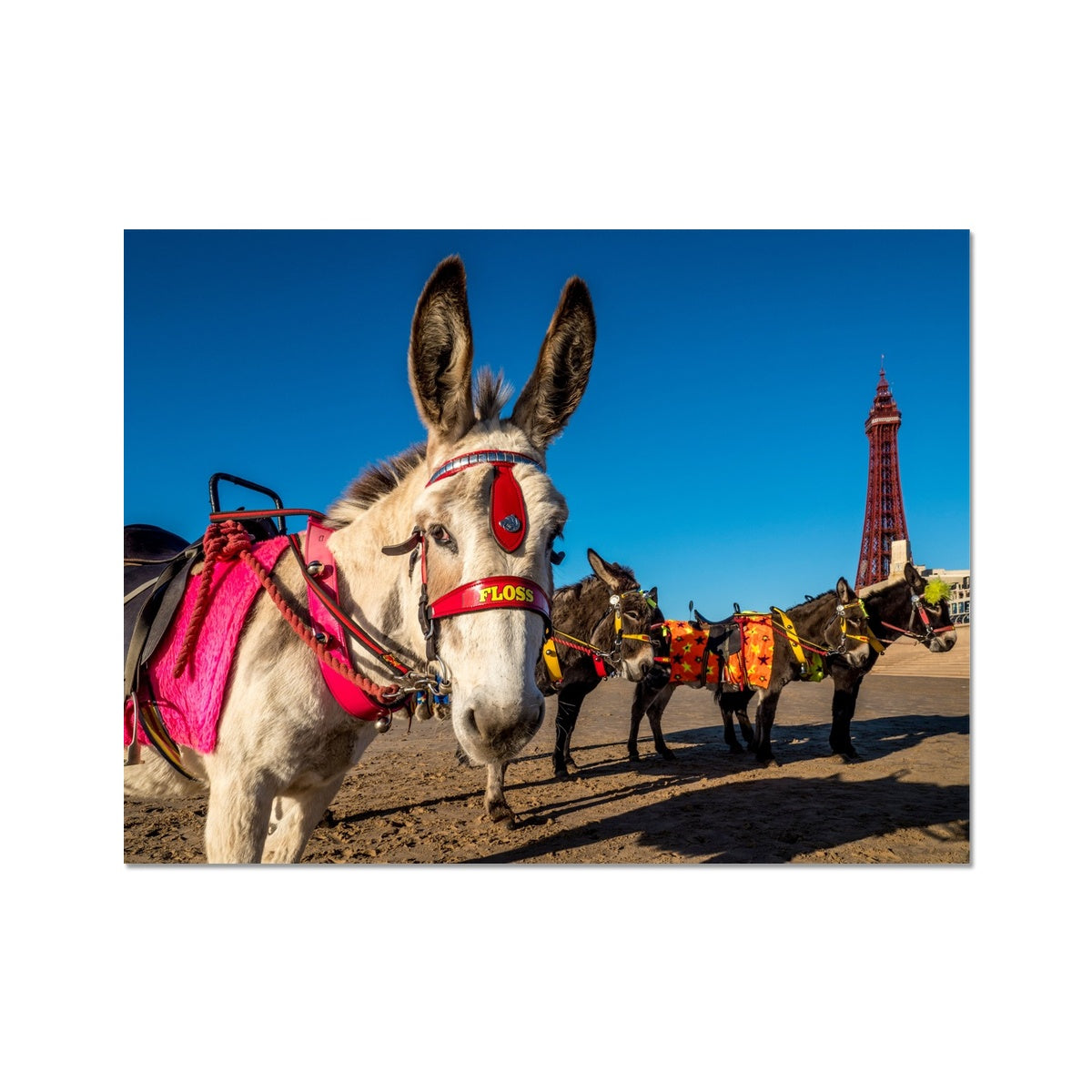Donkeys on beach with Blackpool Tower Fine Art Print