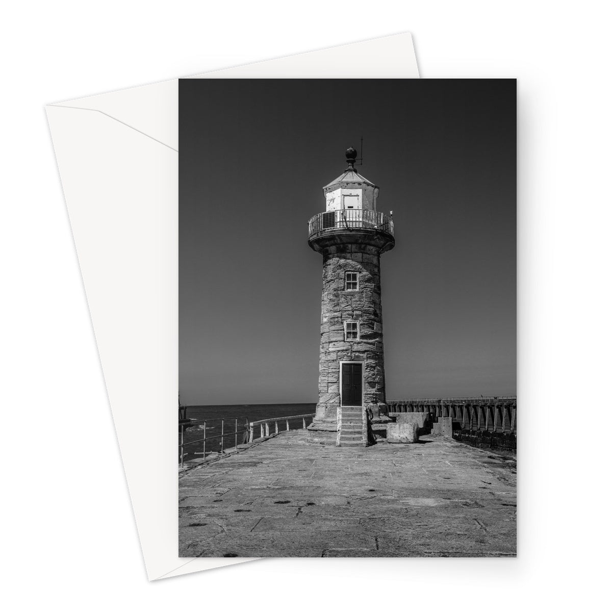 East Lighthouse on East Pier, Whitby, UK. Greeting Card