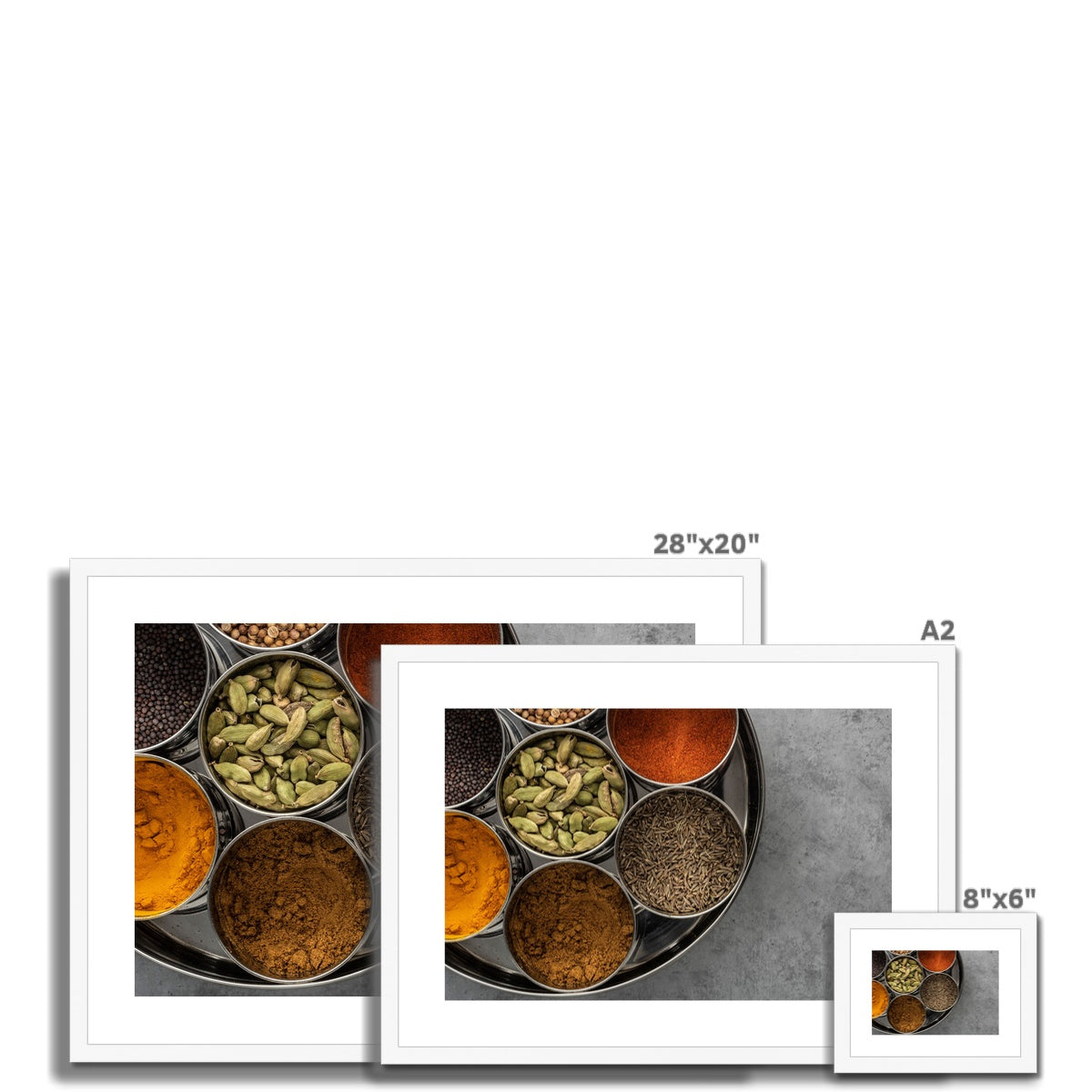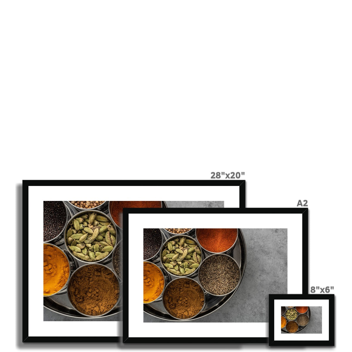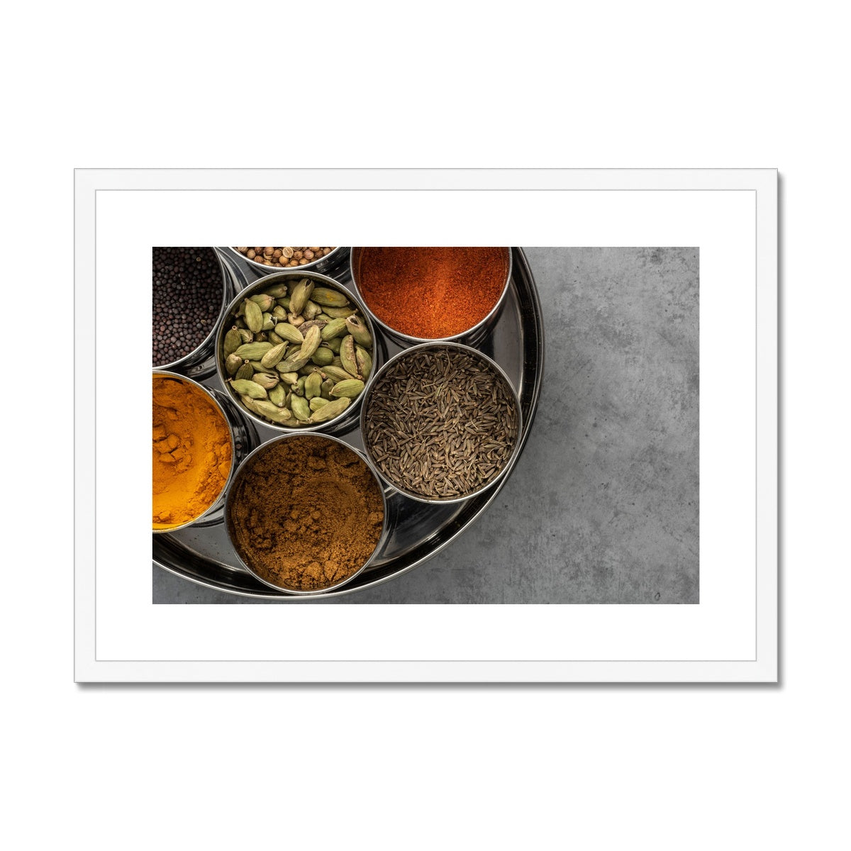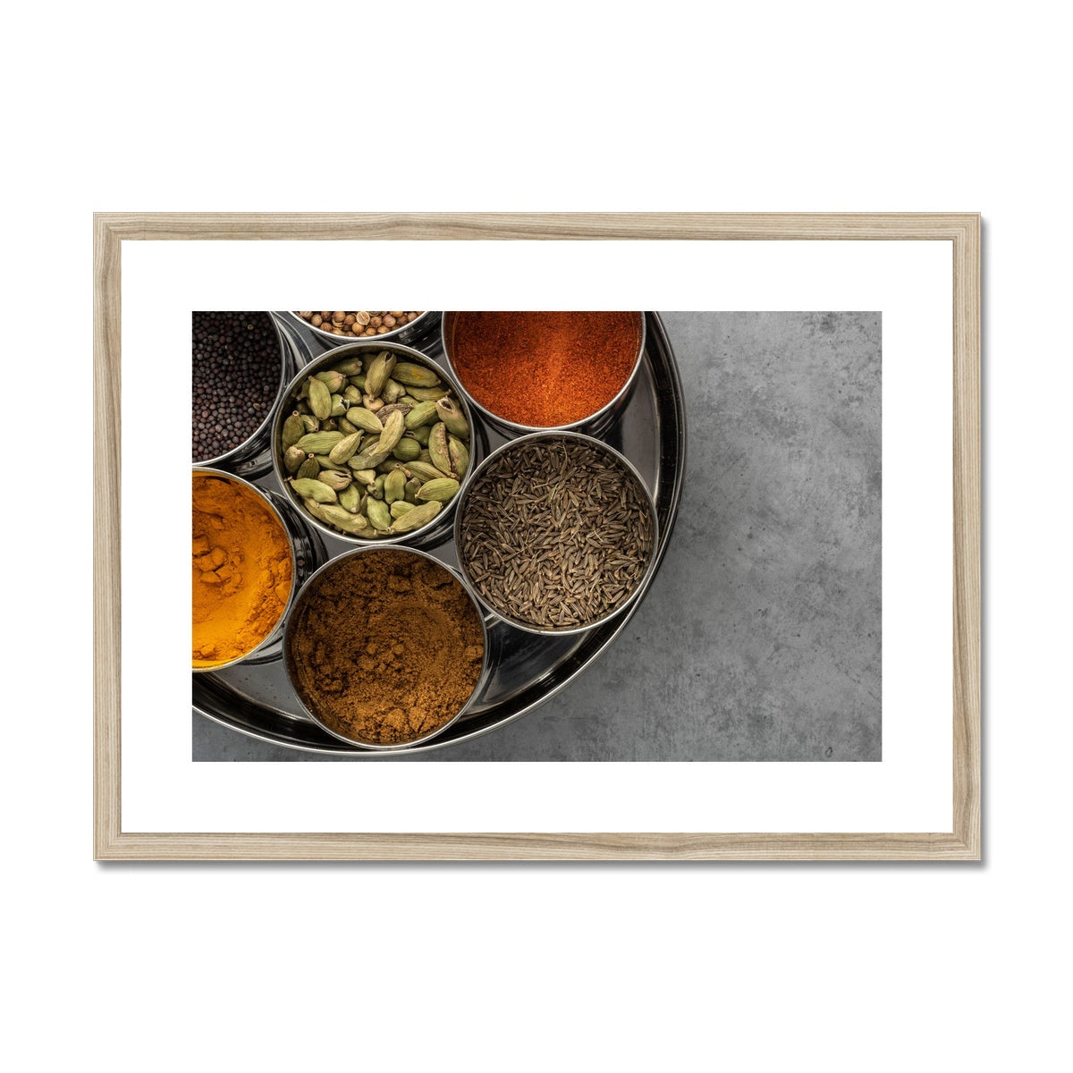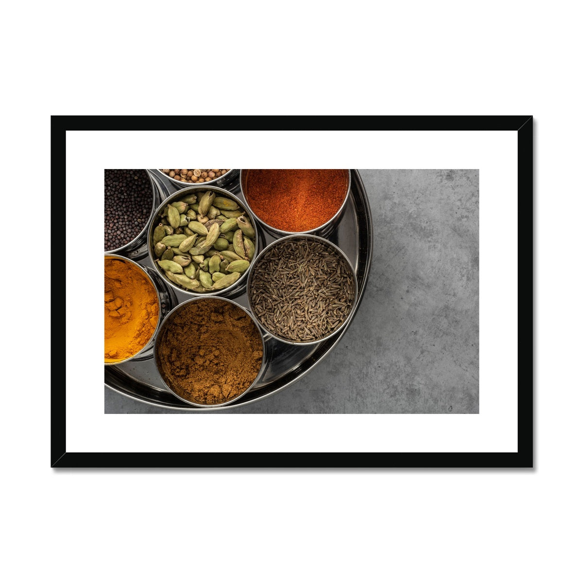 Flat lay of an spice tin (masala dabba) Framed & Mounted Print