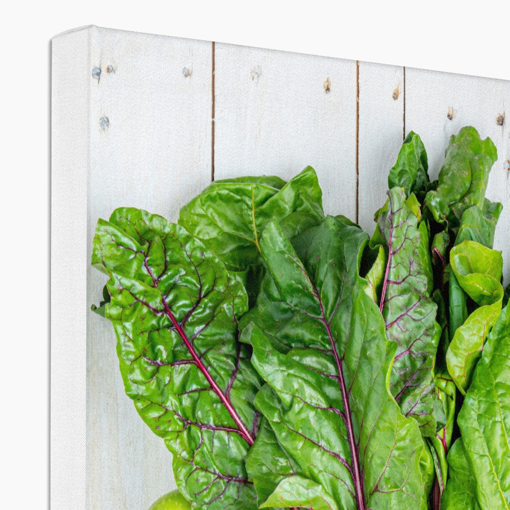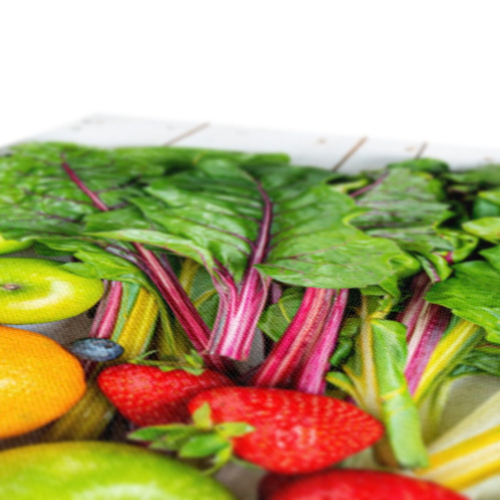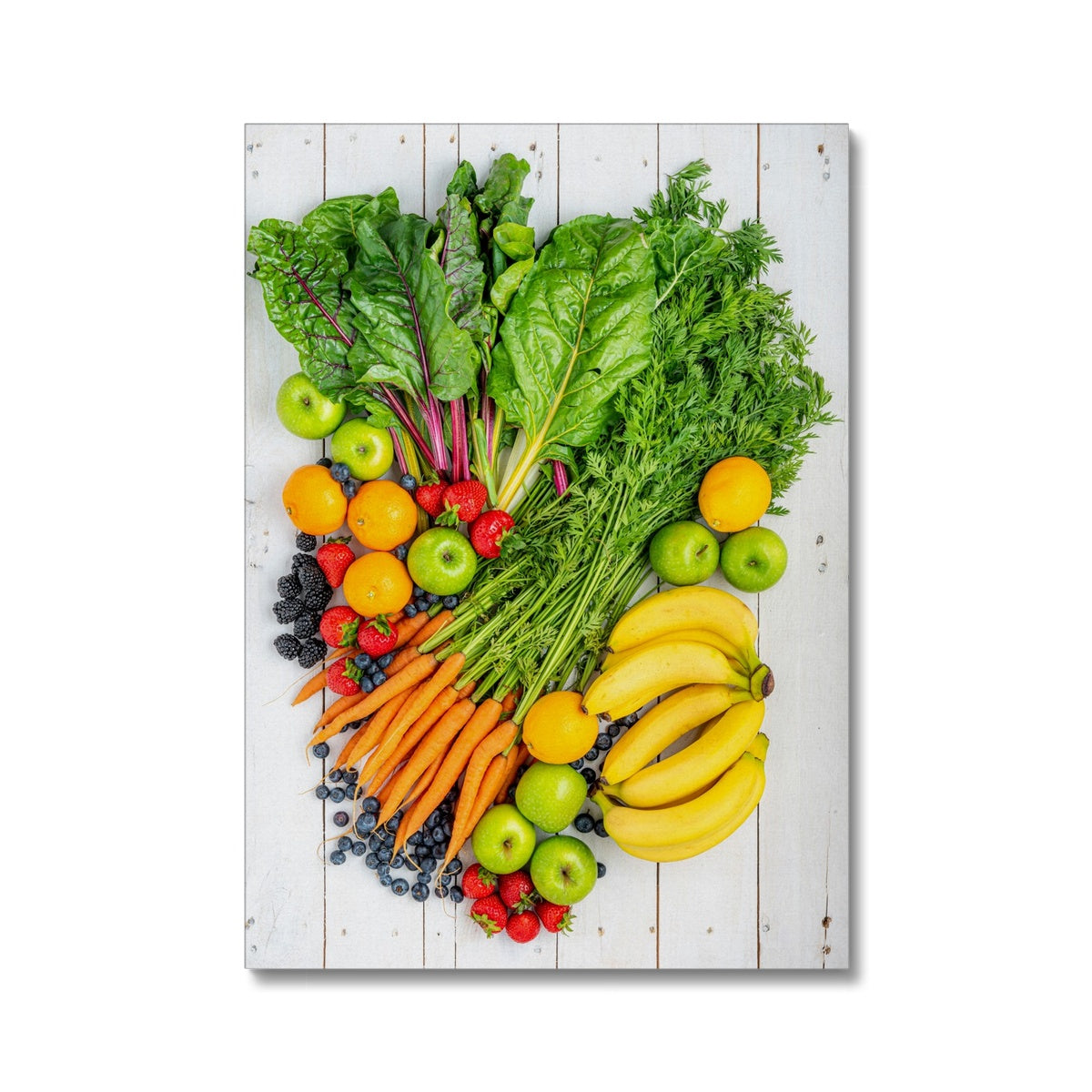 Flat lay of fresh fruit and vegetables on a modern rustic background Canvas