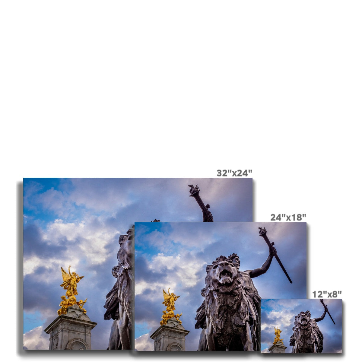Gilded Winged Victory at the top of the Victoria Memorial and Progress bronze statue at base, London. Canvas