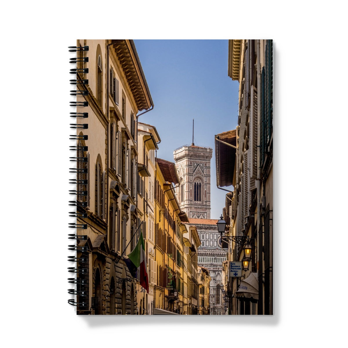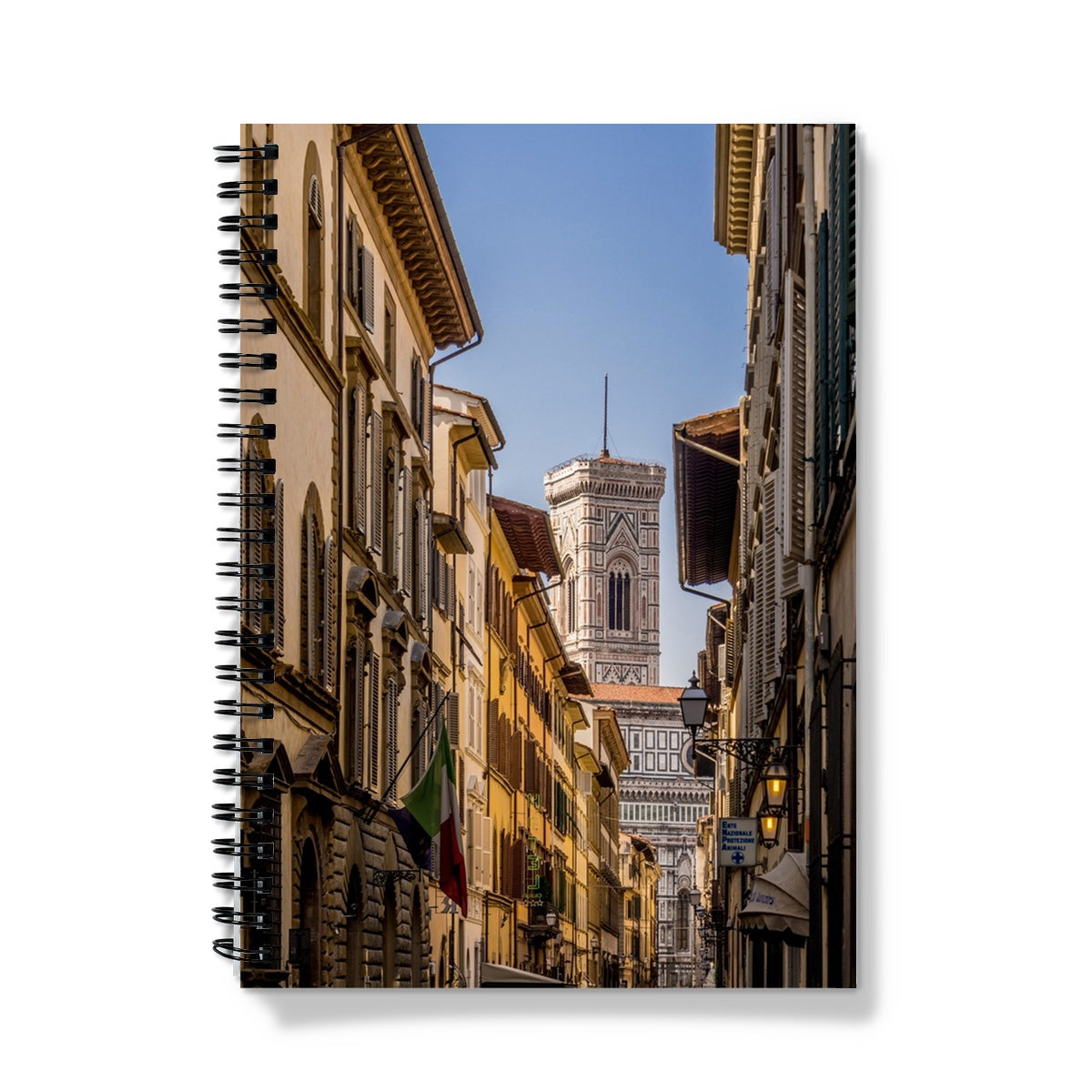 Giotto's Campanile glimpsed between buildings in the city of Florence, Italy. Notebook
