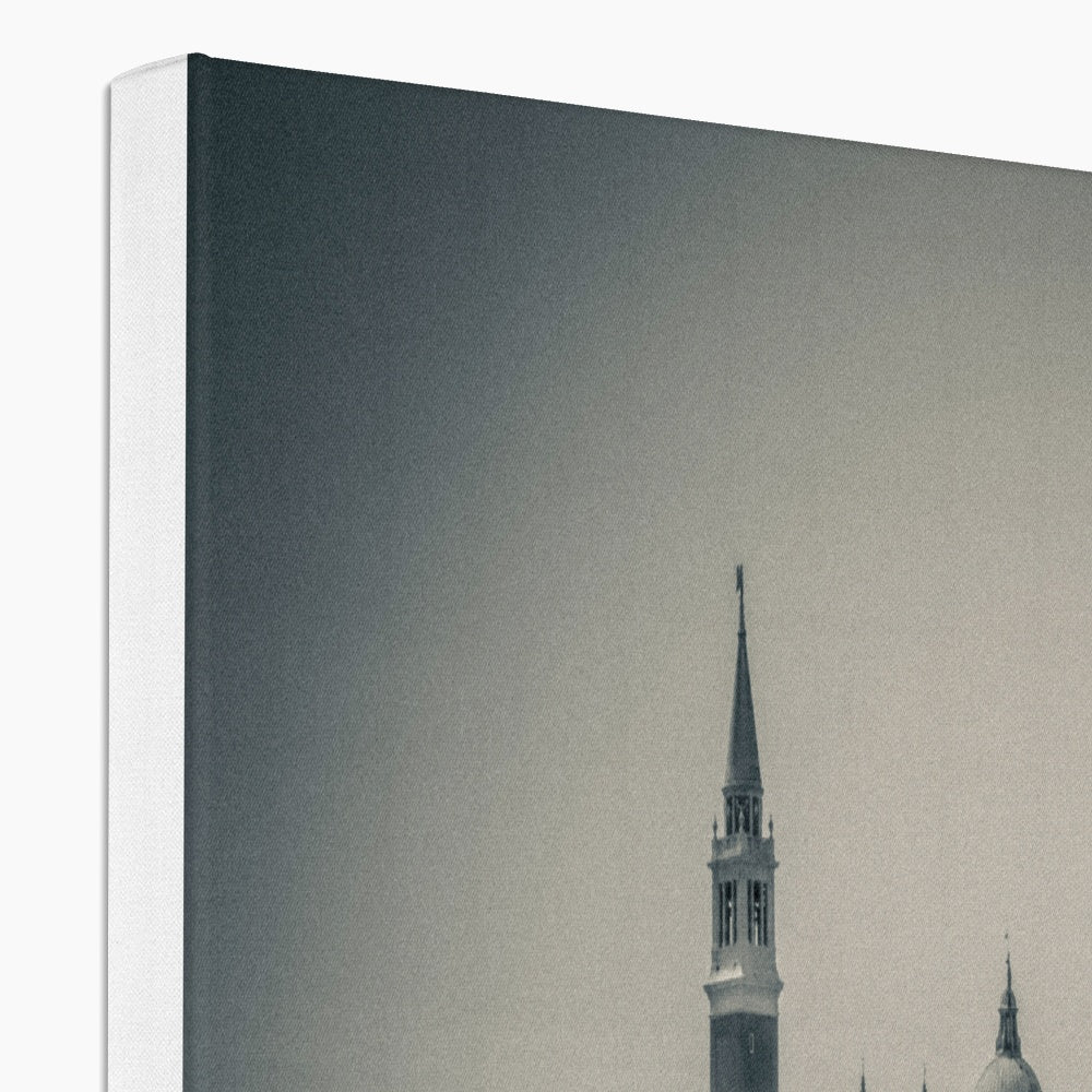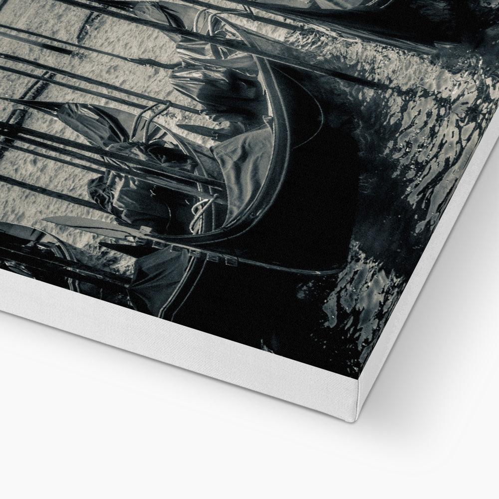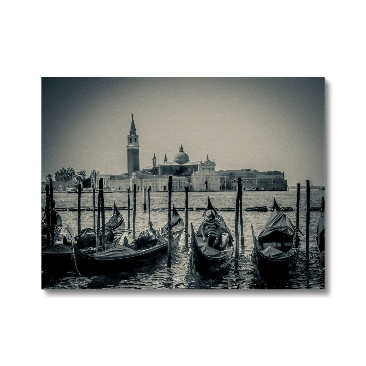 Gondolas moored in St Mark's Basin with San Giorgio Maggiore in the background. Venice, Italy. Canvas