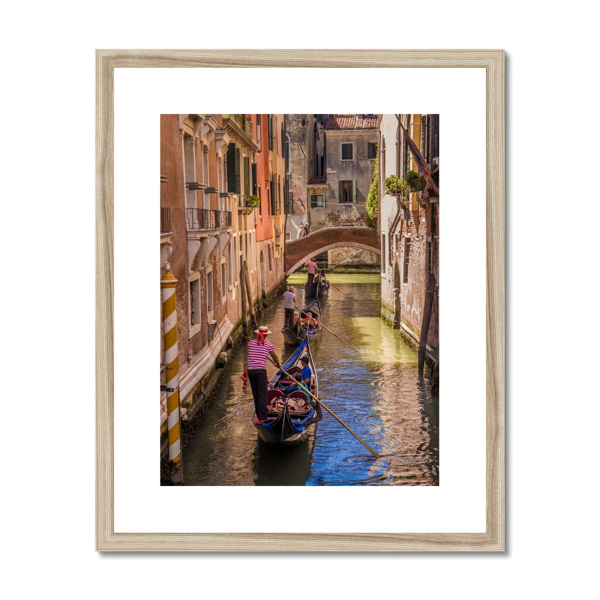 Gondolas on a canal in Venice, Italy Framed & Mounted Print