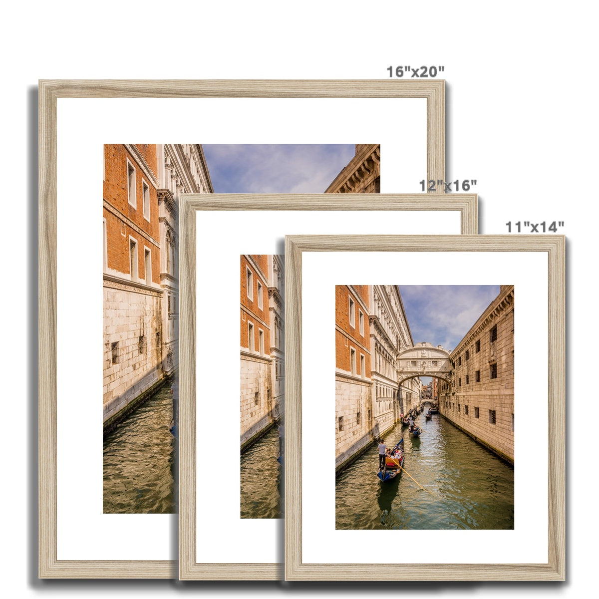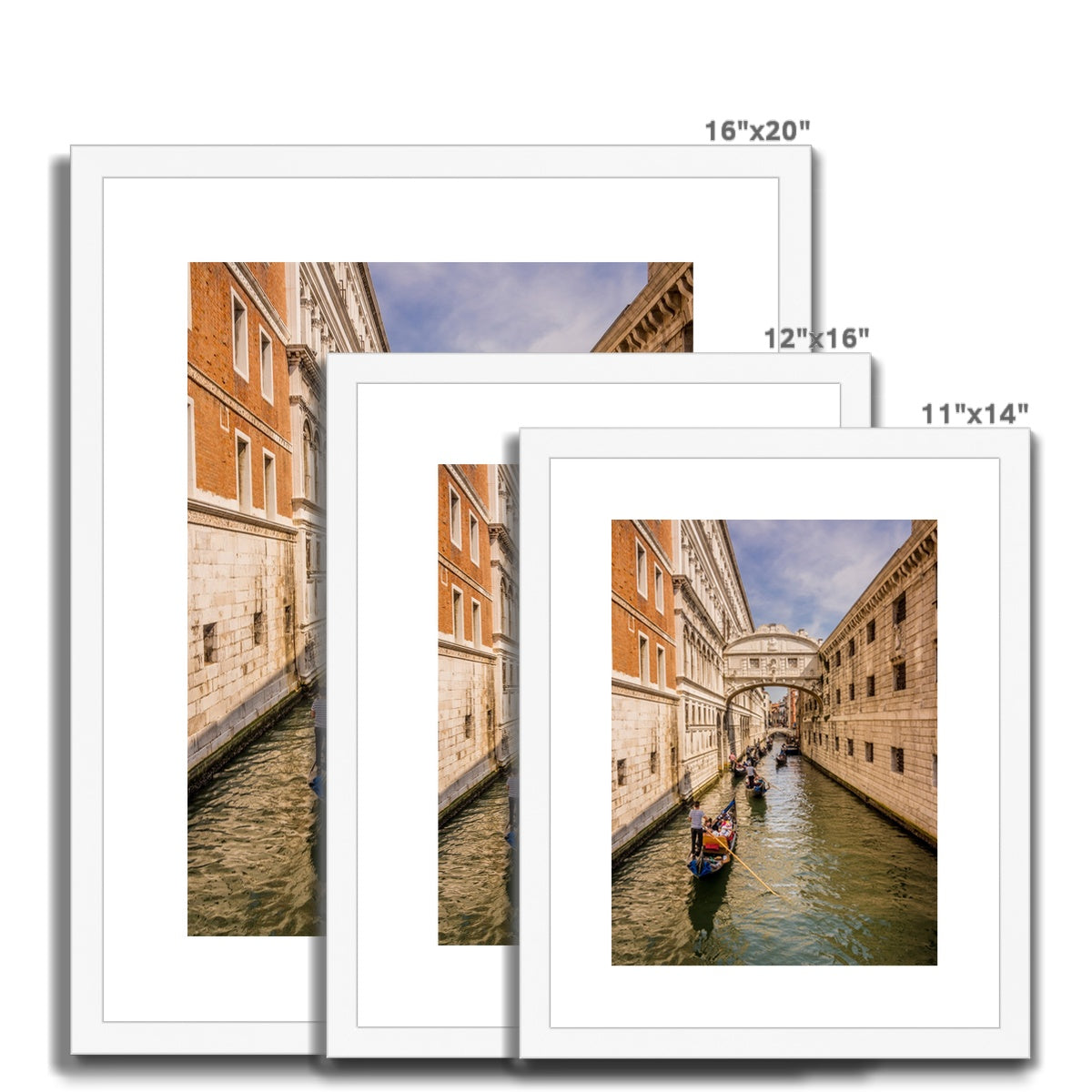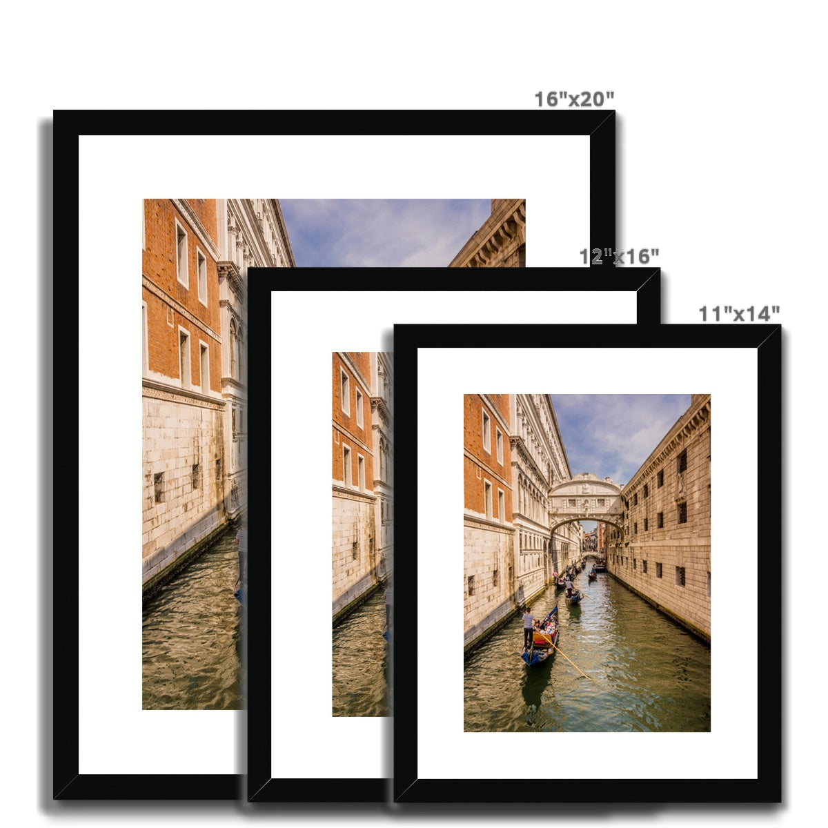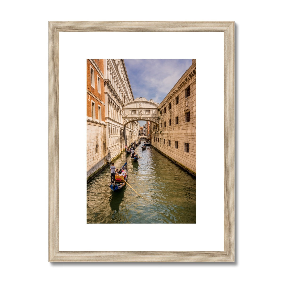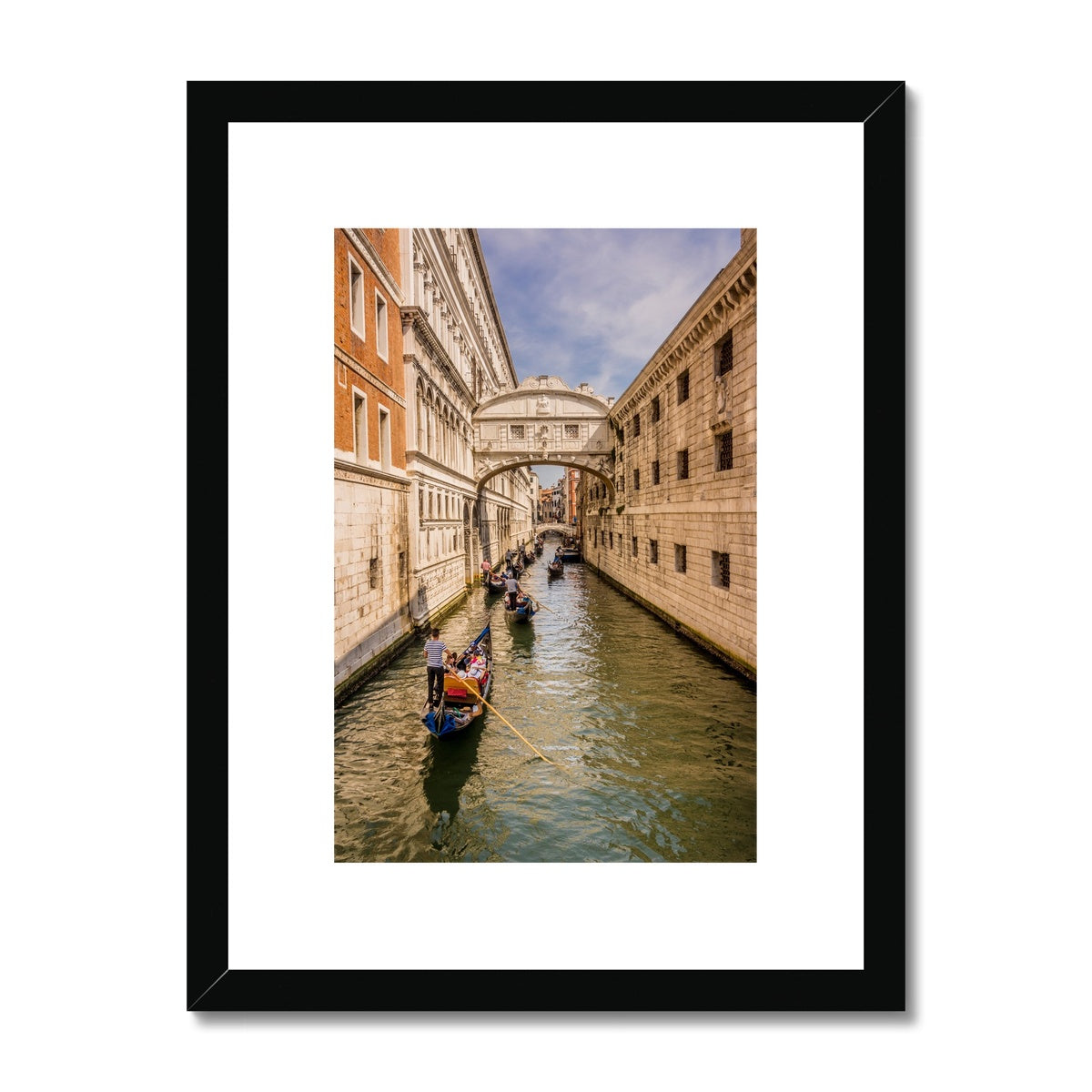Gondolas passing under the Bridge of sighs. Venice. Italy. Framed & Mounted Print