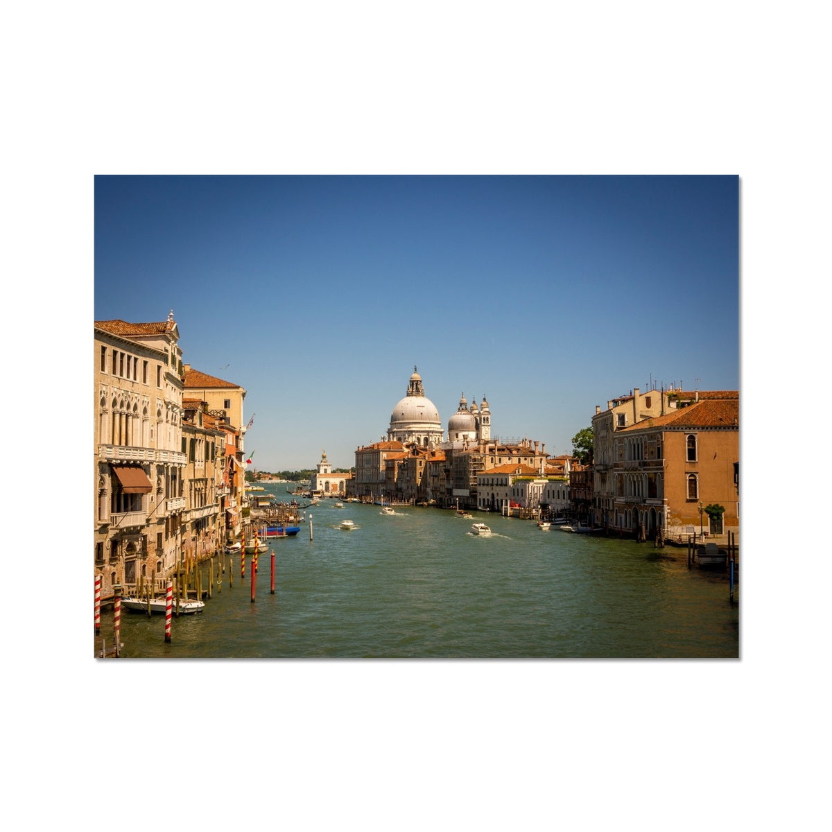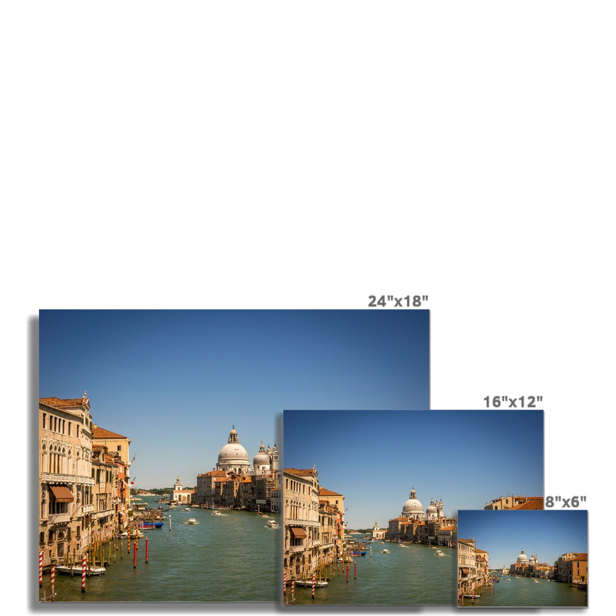 Grand canal in Venice with the domes of the church Santa Maria della Salute in the distance Fine Art Print