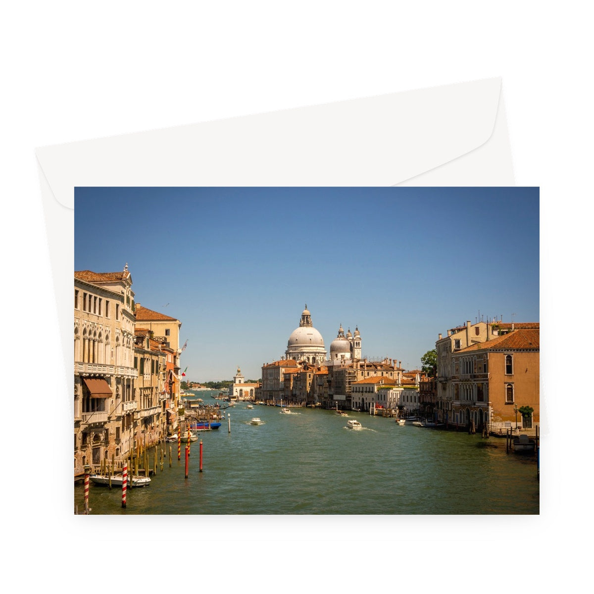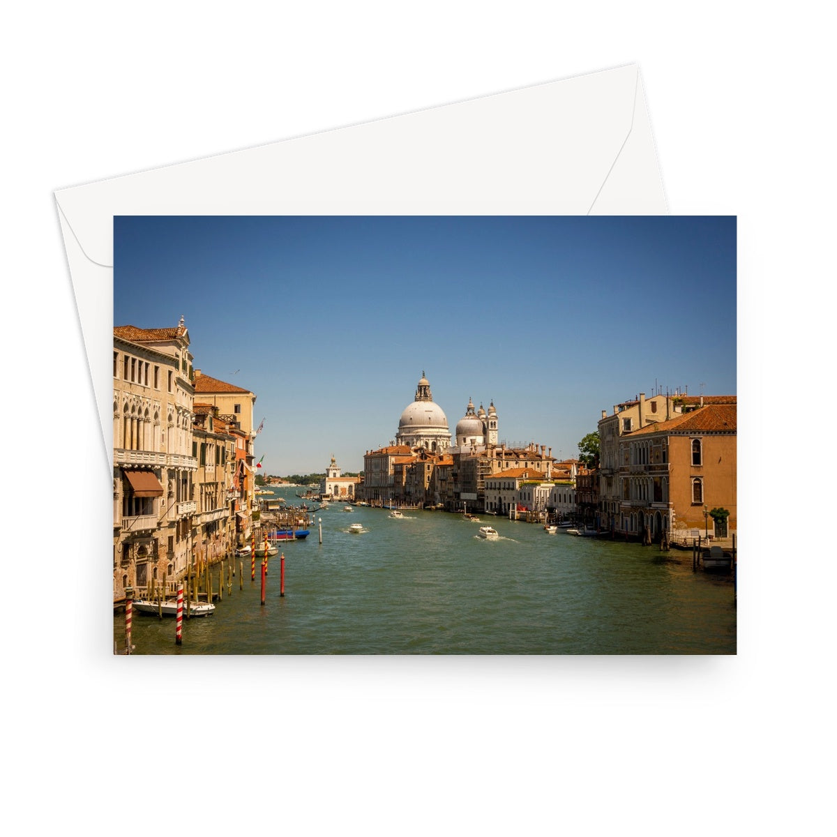 Grand canal in Venice with the domes of the church Santa Maria della Salute in the distance Greeting Card