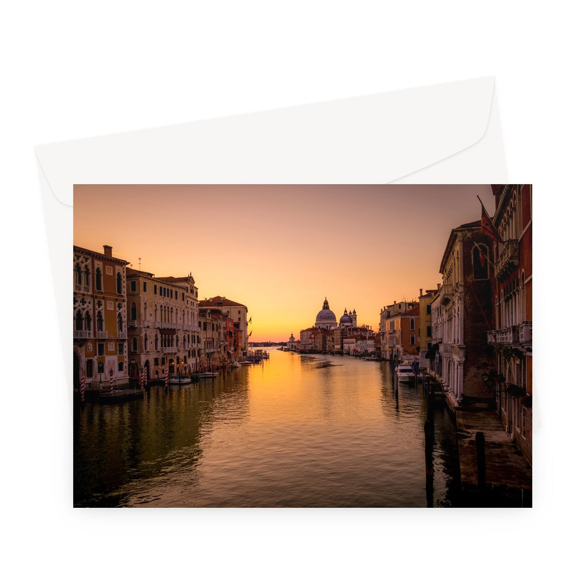 Grand Canal with Santa Maria della Salute in the distance at sunrise. Venice, Italy. Greeting Card