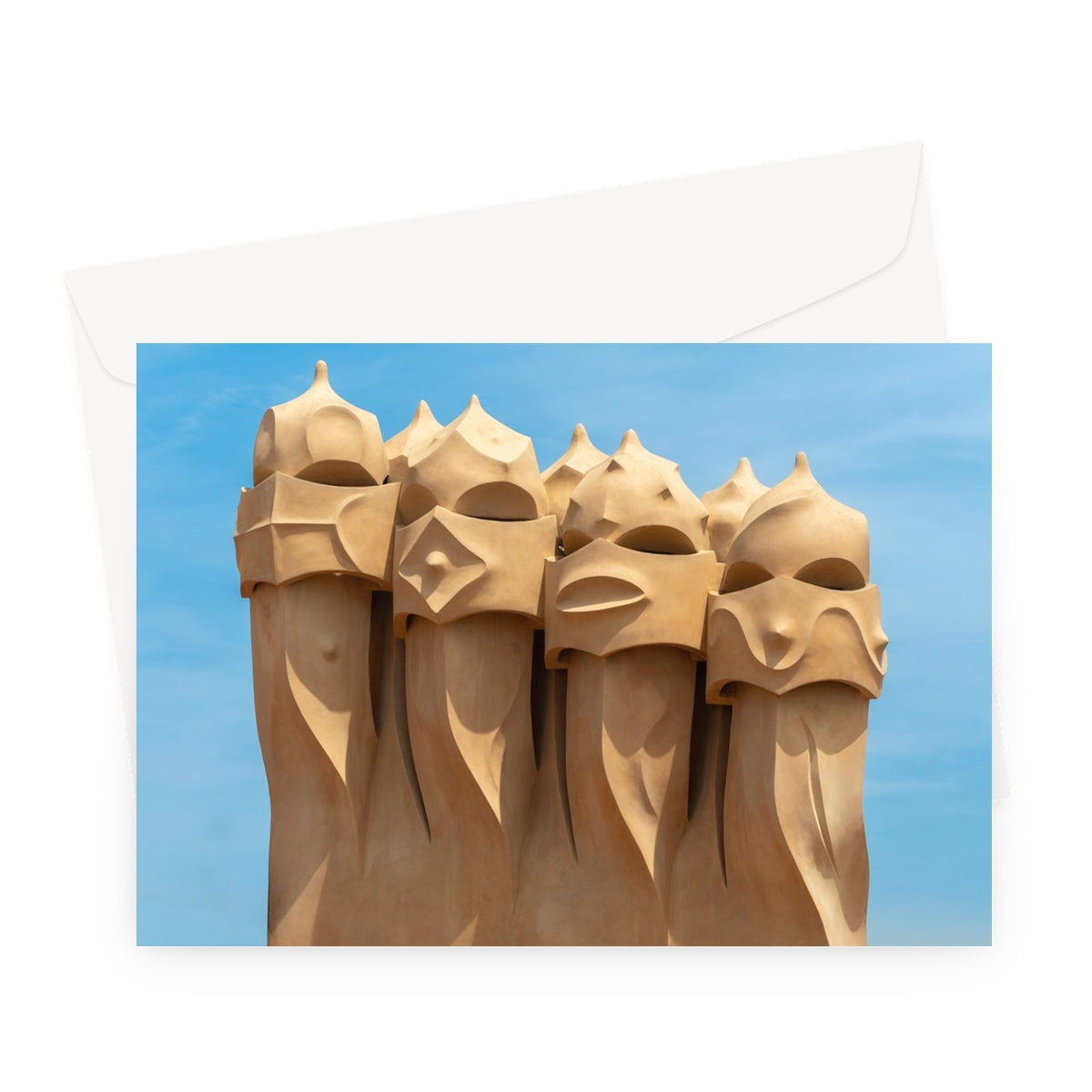 Helmet-like chimneys on Casa Milà rooftop terrace Greeting Card