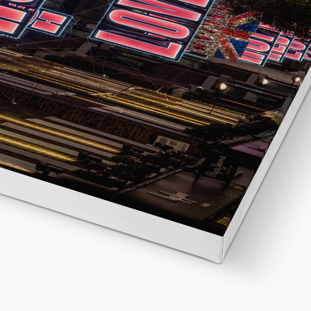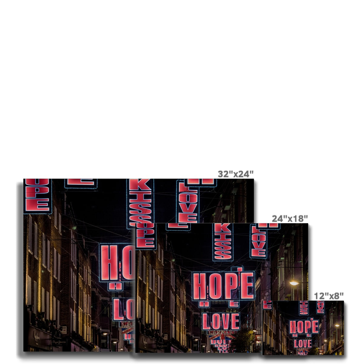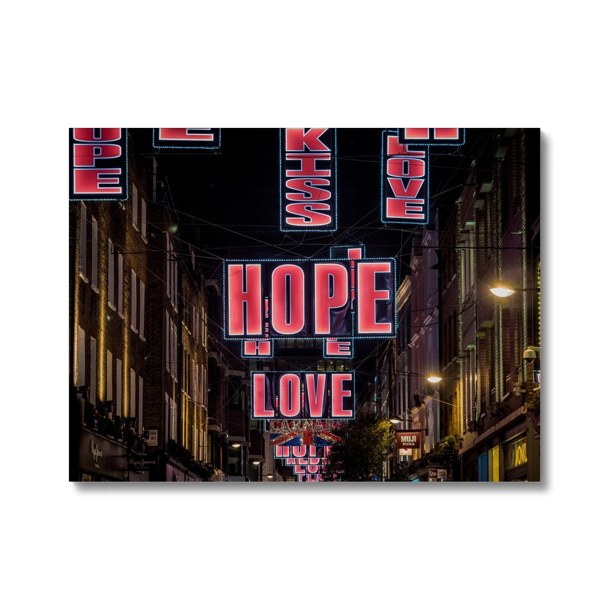 Hope and Love Christmas illuminations in Carnaby Street, London, UK. Canvas