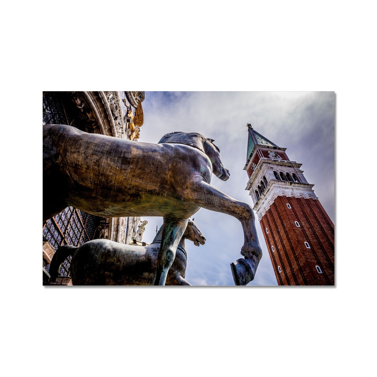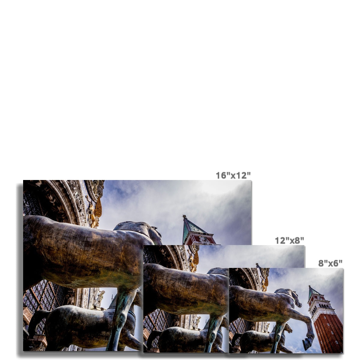 Horses of Saint Mark statues on the balcony of St Marks's basilica in Venice, Italy. Fine Art Print