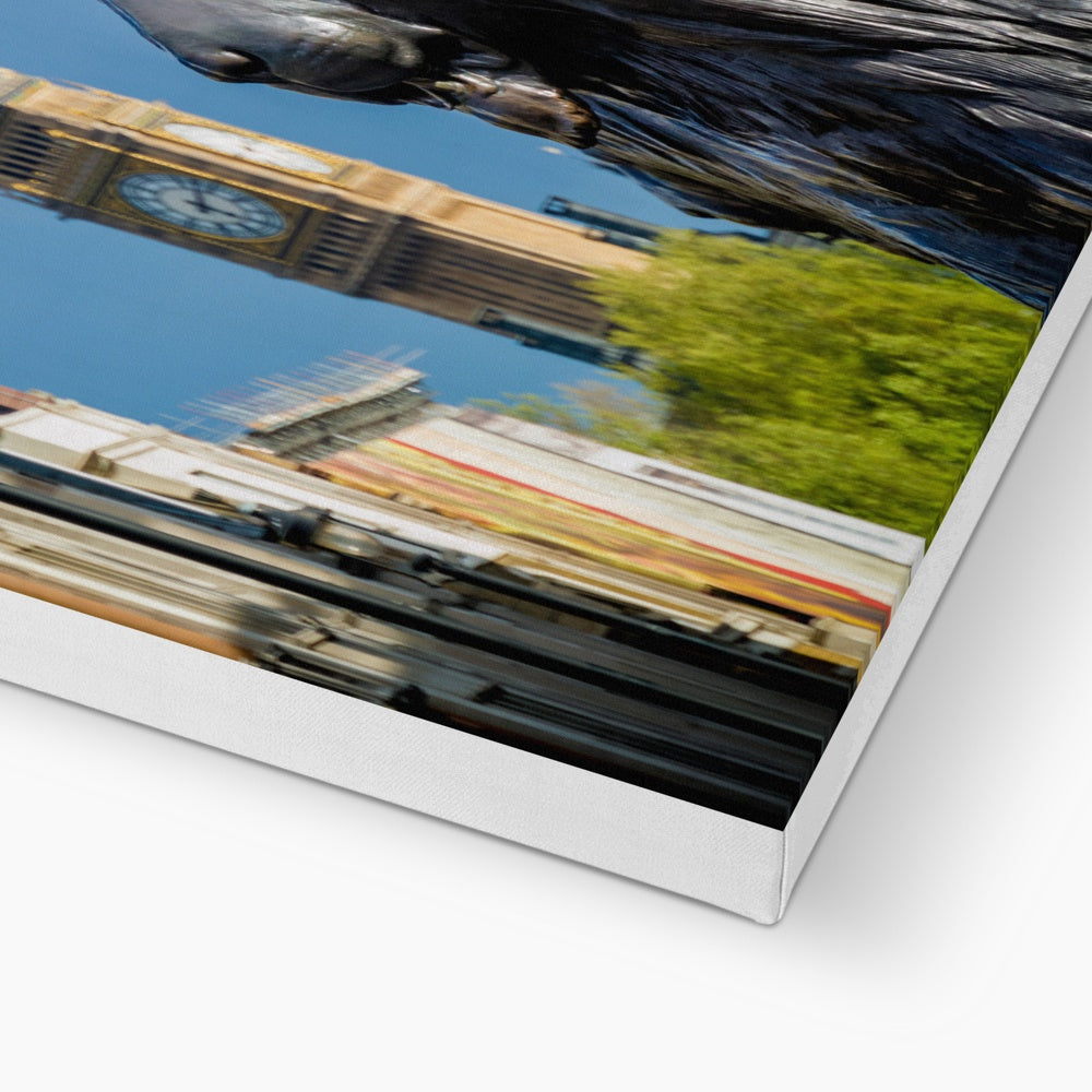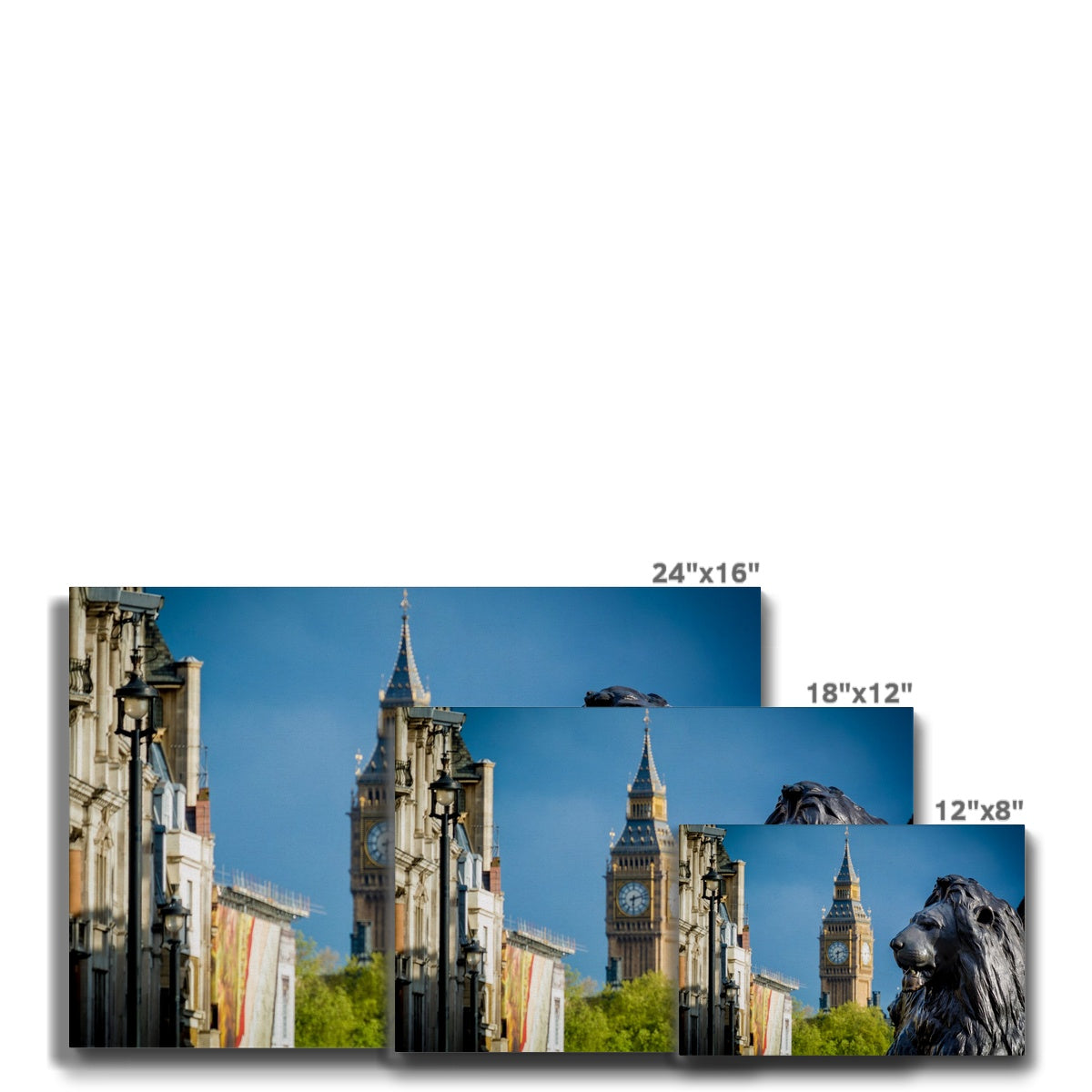 Lion statue in Trafalgar Square, with Big ben in background, London. Canvas