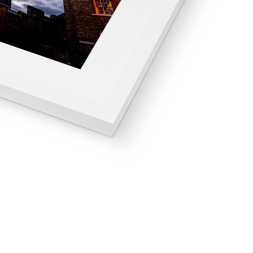 Monk Bar with illuminated Light Curtain for Christmas, York, UK. Framed & Mounted Print