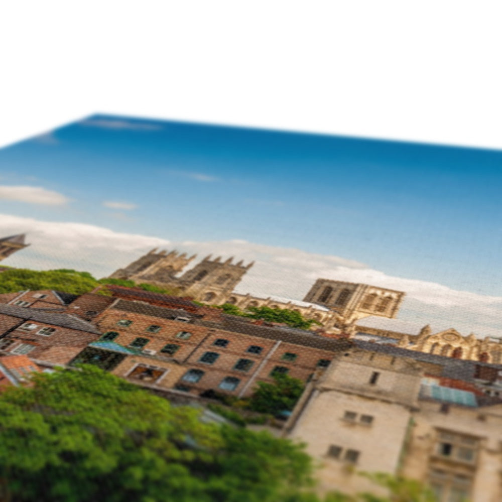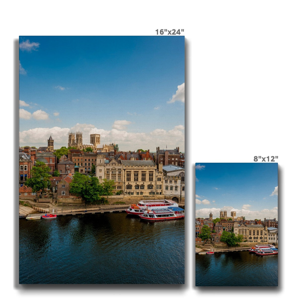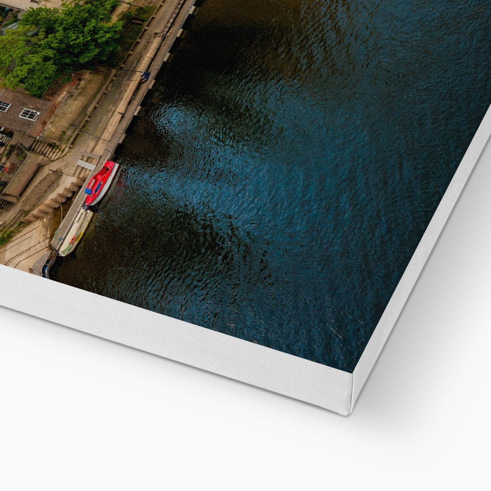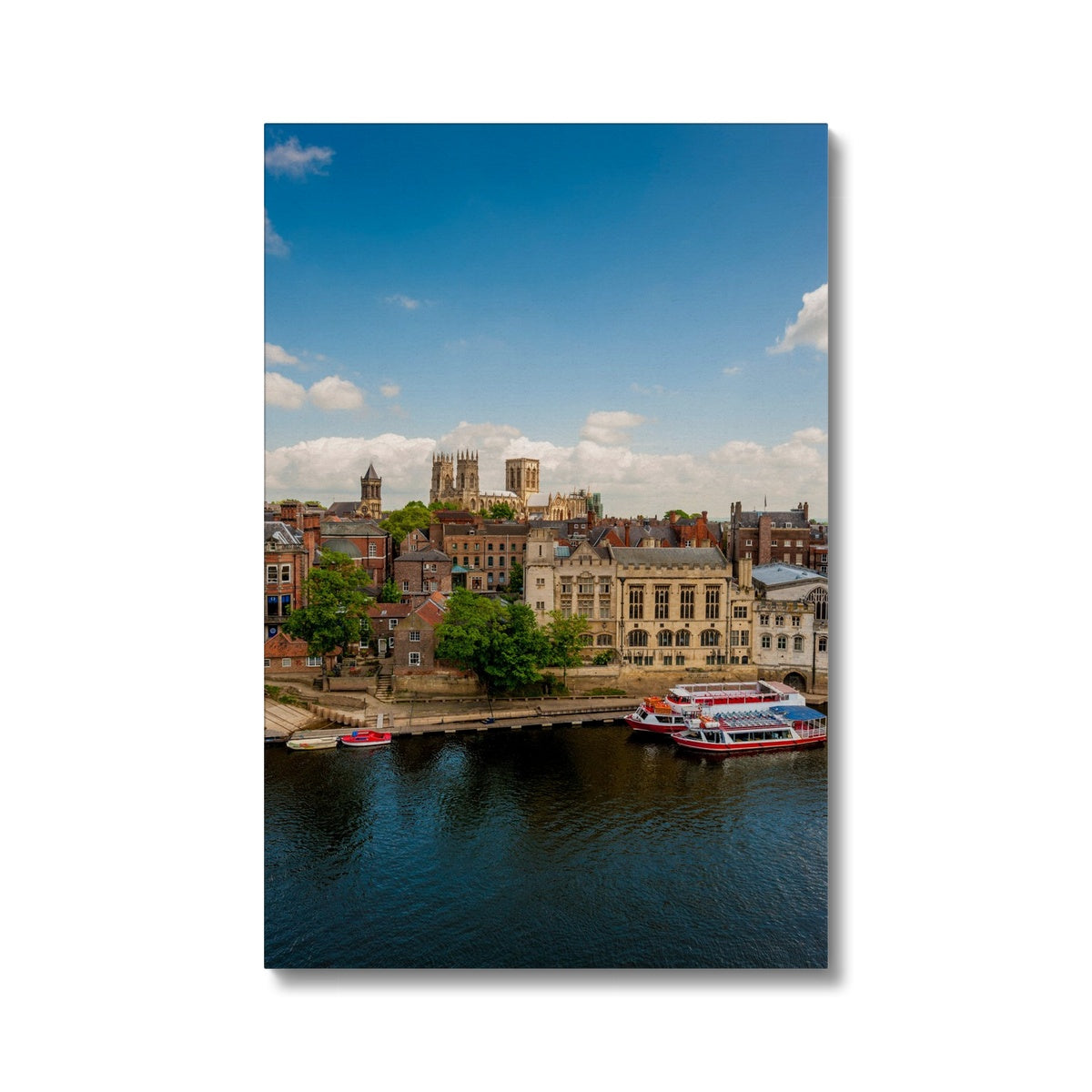 Moored boats on the River Ouse with the Guildhall and York Minster in the distance. York. UK Canvas
