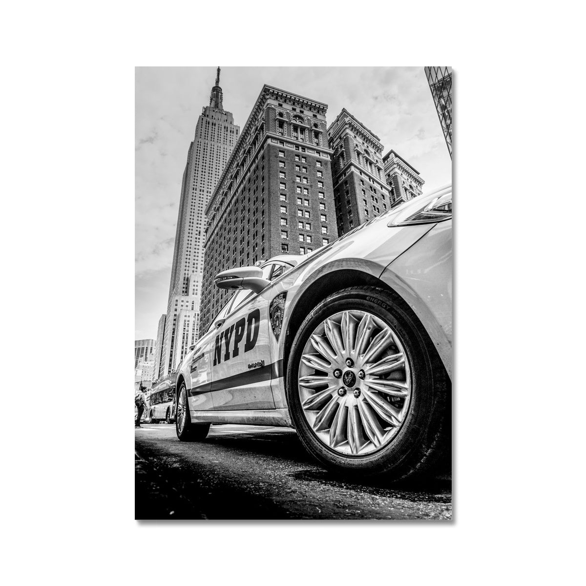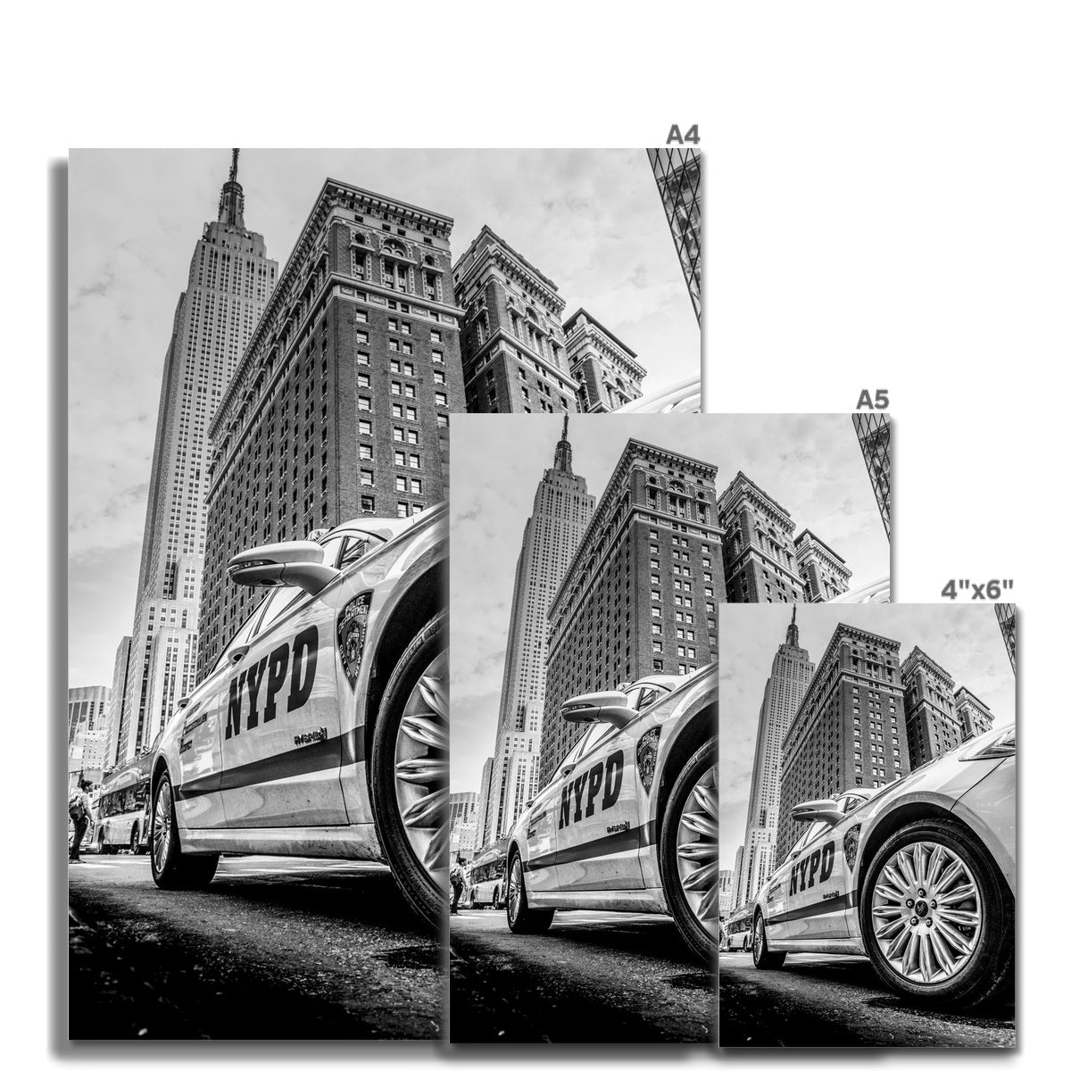 NYPD patrol car with Empire State Building on W 34th St, New York City, USA. Fine Art Print