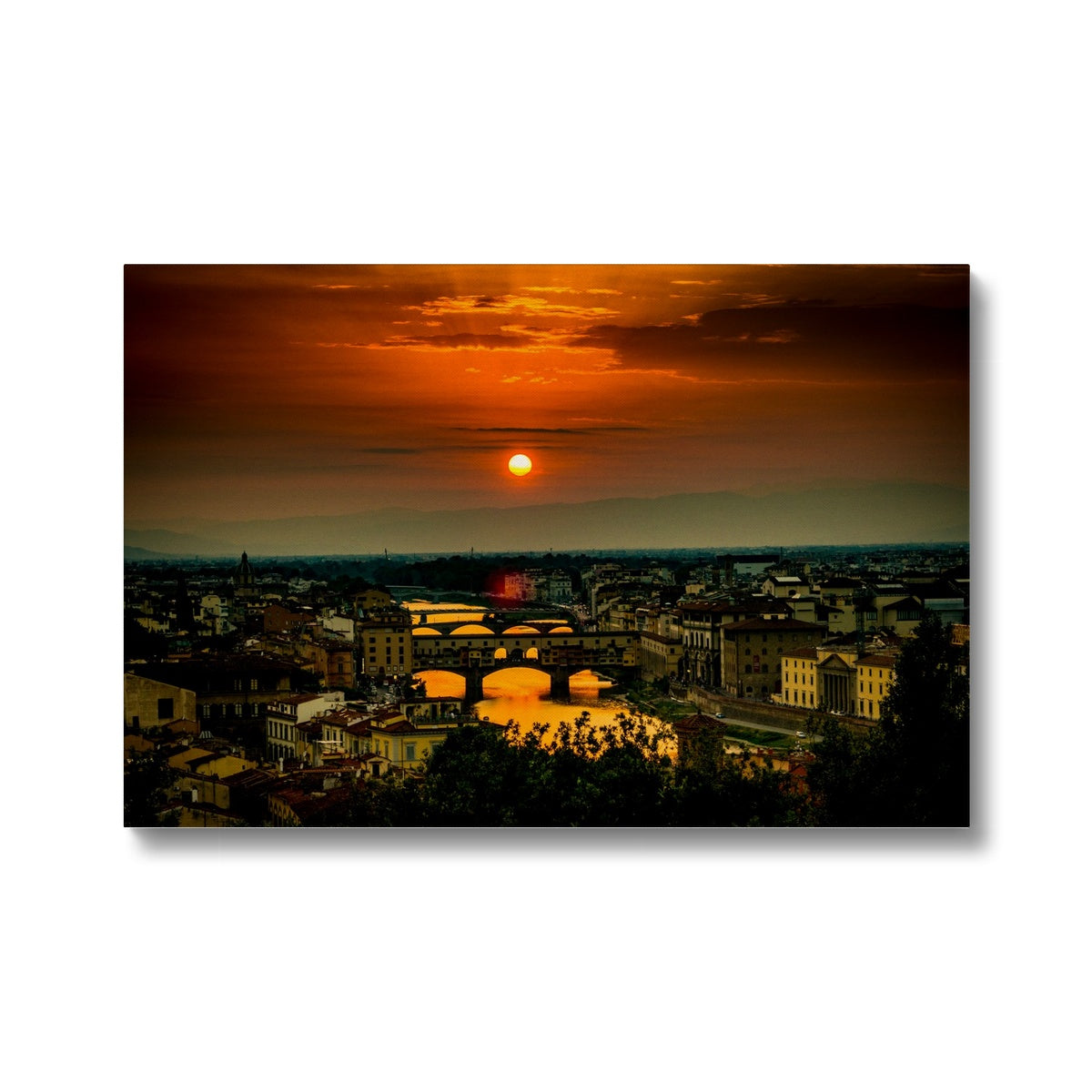 Ponte Vecchio at sunset and the river Arno. Florence, Italy. Canvas