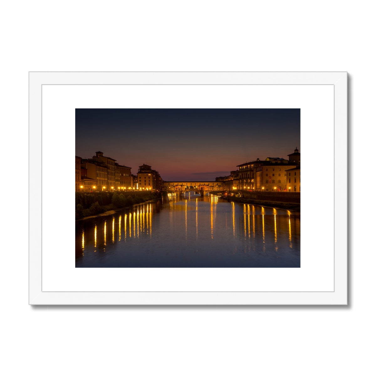 Ponte Vecchio at sunset and the river Arno. Florence, Italy. Framed & Mounted Print