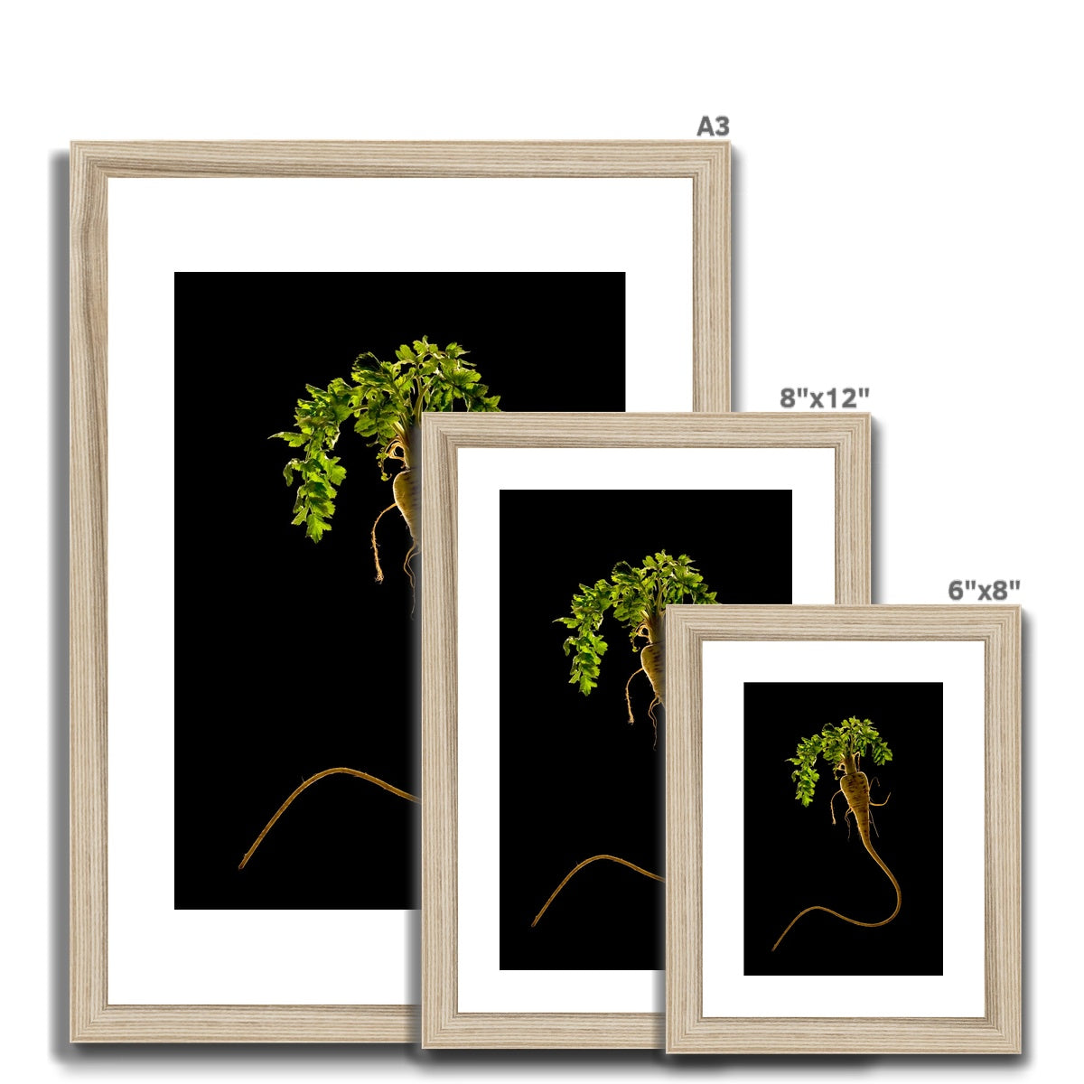 Created from high-quality wood, milled with simple clean lines and presented with a satin finish. Includes an off-white mount that will not discolour or fade with age.