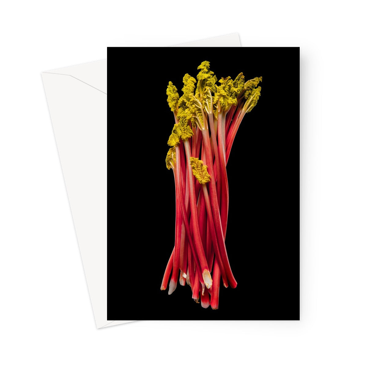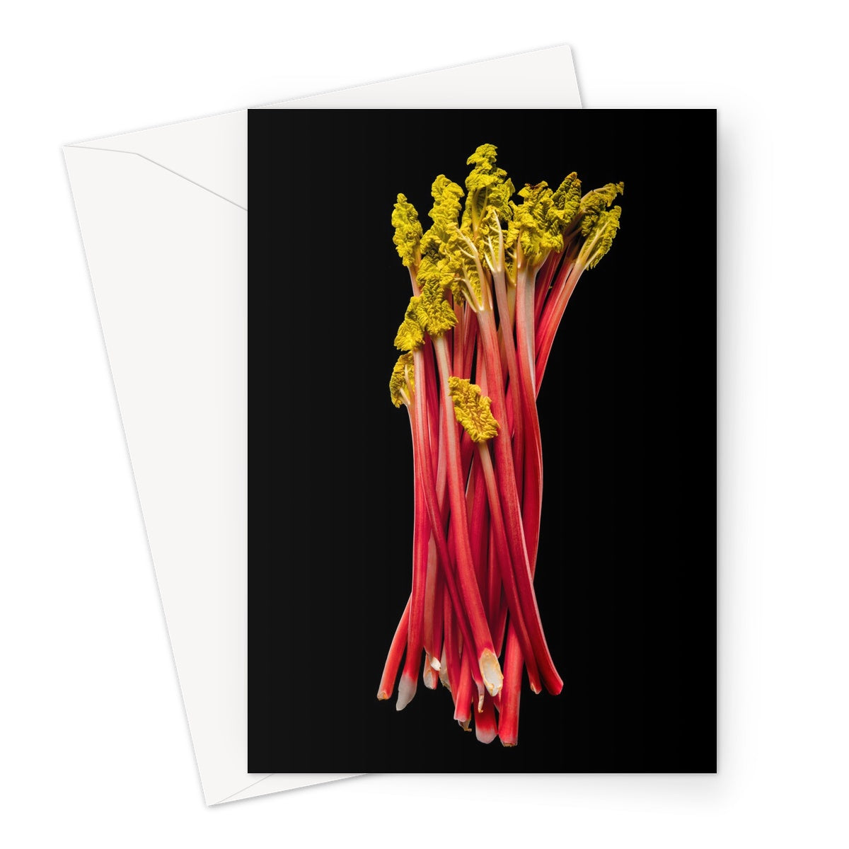 Rhubarb on black background Greeting Card
