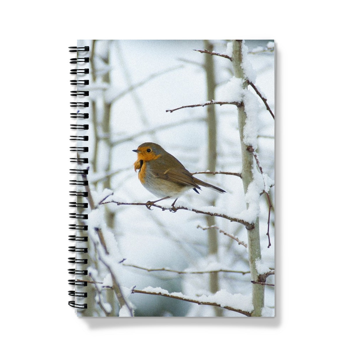 Robin perched on a snow covered tree branch Notebook