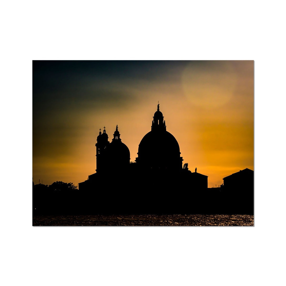 Silhouette of Santa Maria della Salute on the Grand Canal in Venice against a golden sky at sunset. Italy. Fine Art Print