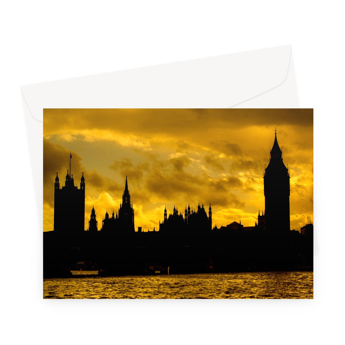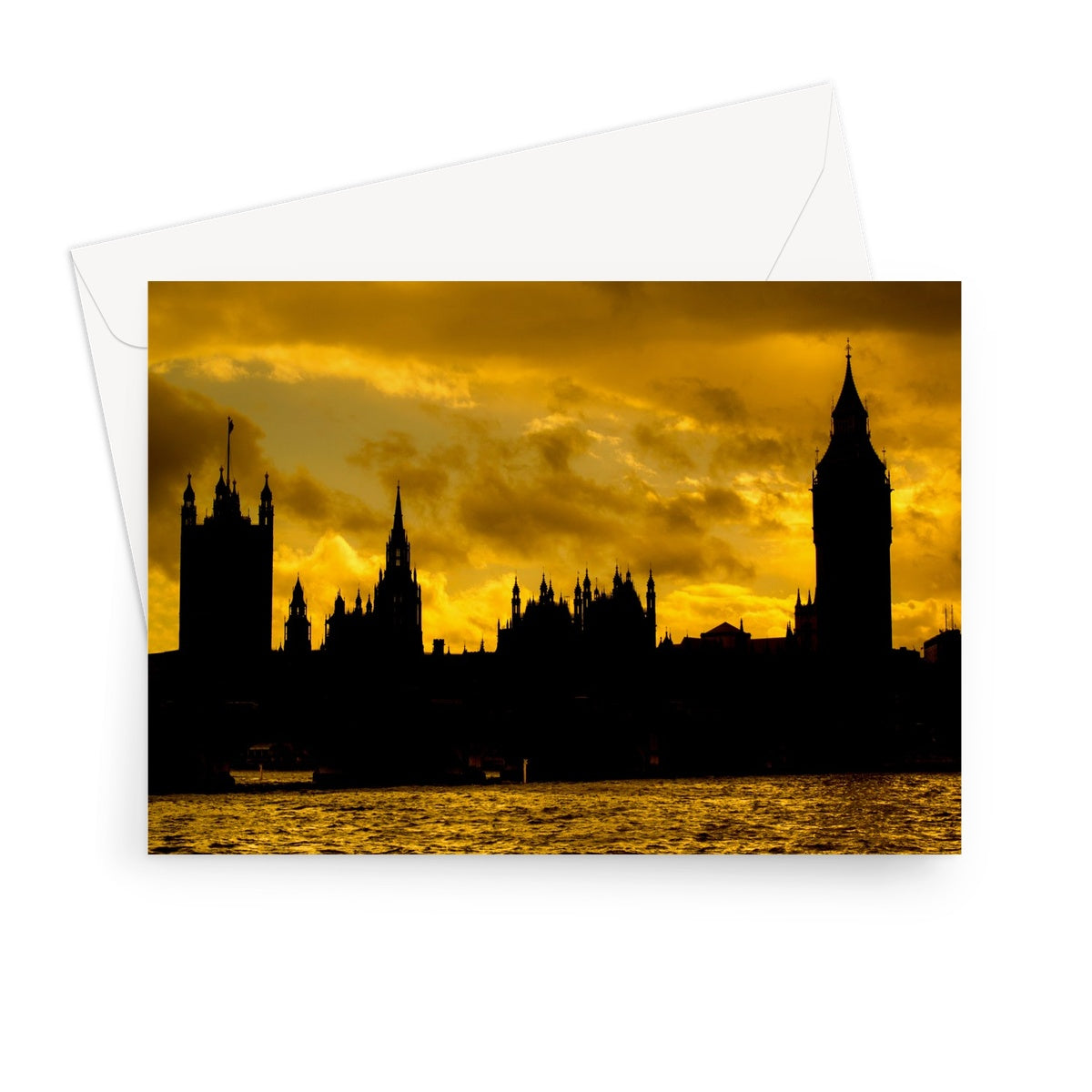 Silhouetted Houses of Parliament, Westminster, London. Greeting Card