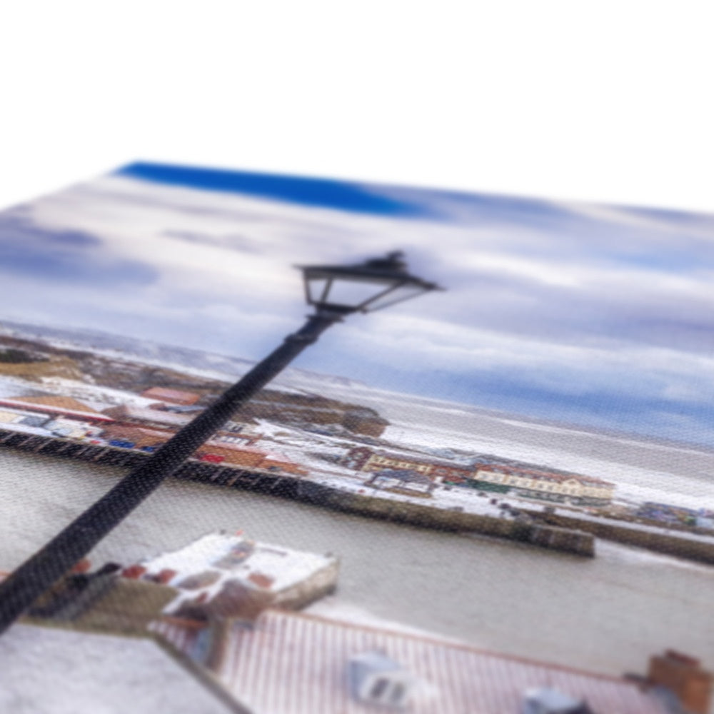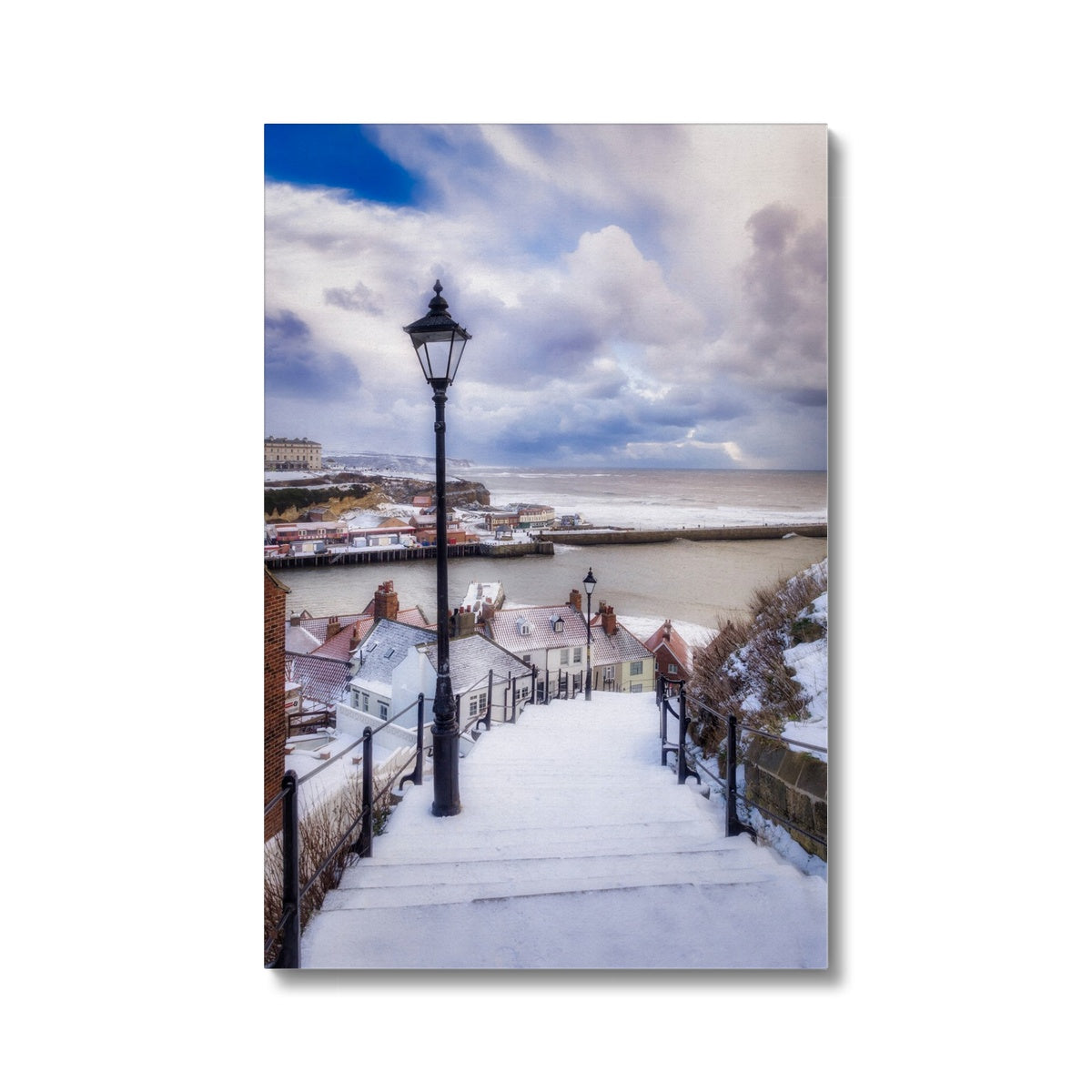 Snow covered steps leading down from St Mary's Church, Whitby, UK. Canvas